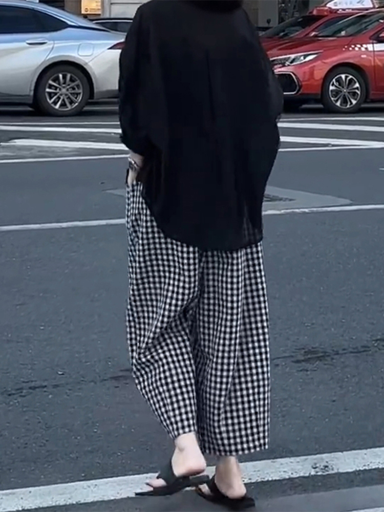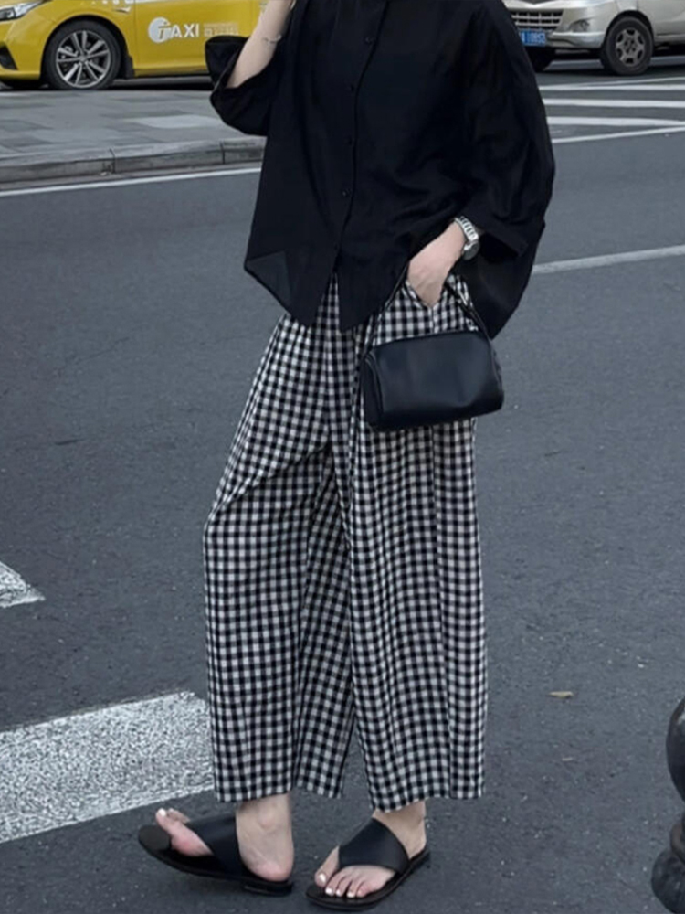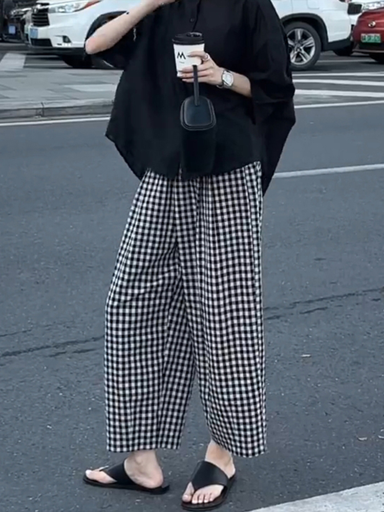 Elevate your wardrobe with our Plus Size Black and White Checkered Wide-Leg Pants, designed for women who embrace both style and comfort. These trendy loose high-waisted trousers are perfect for petite sizes, offering a flattering silhouette that pairs beautifully with any top. The chic checkered pattern adds a modern twist to your outfits, making them versatile for both casual and dressy occasions. Don’t miss out on this must-have fashion staple add to your cart today and step out in style!