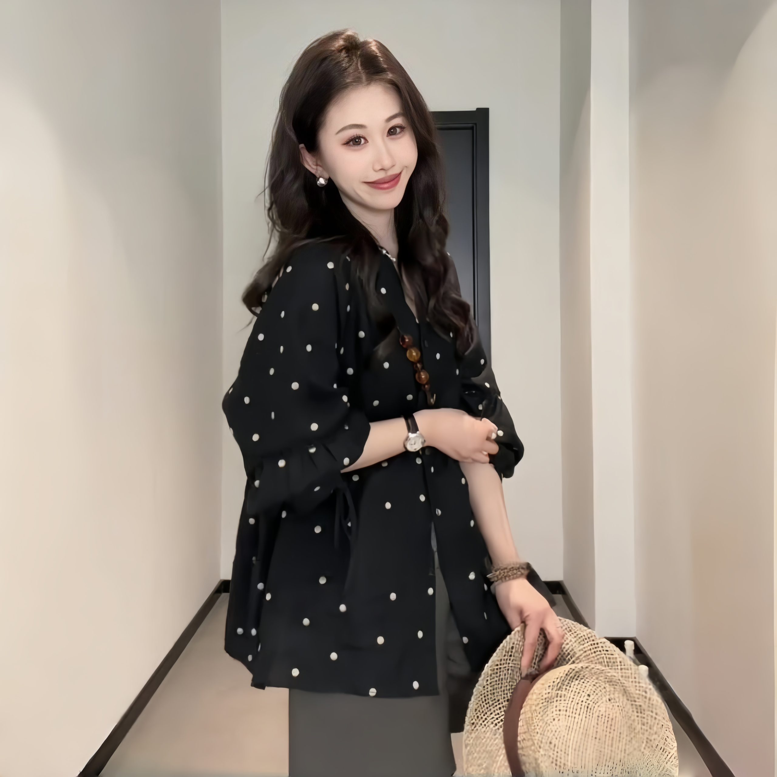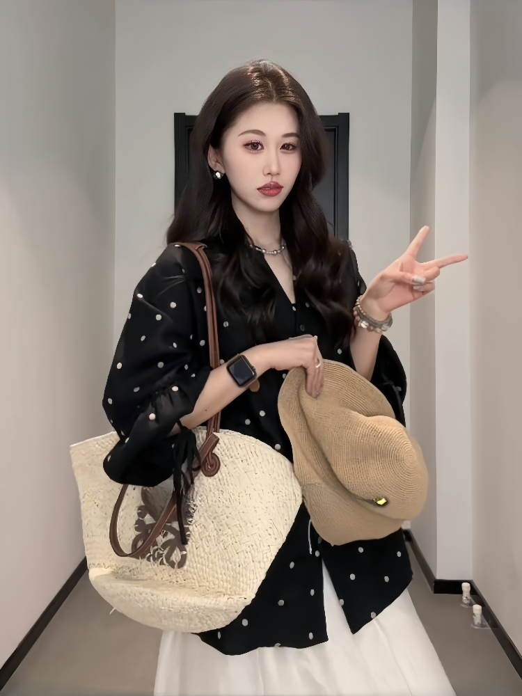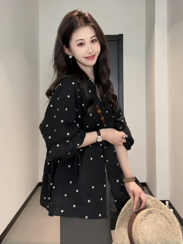Elevate your spring wardrobe with our Plus-Size Black Polka Dot Long Sleeve Top, designed specifically for curvy women. This minimalist linen shirt features stylish lantern sleeves that add a touch of elegance while ensuring a comfortable fit. The playful polka dot pattern brings a fun twist to your look, perfect for both casual outings and dressier occasions. Embrace your curves and enjoy the breathable fabric that keeps you cool and chic all season long. Don’t miss out on this versatile staple add it to your cart today!