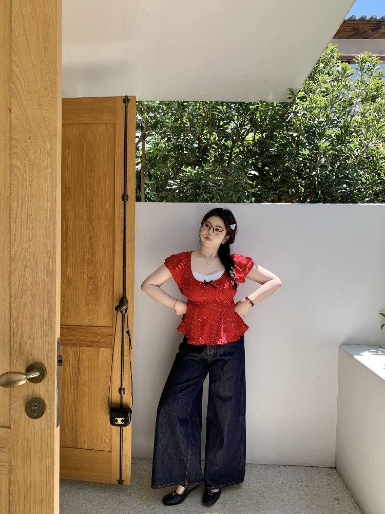 Plus Size Chiffon Blo Young Red Polka Dot Short Sleeve Wave Edge Pullover Shirt High-quality product featuring fall clothing trends 2025, fall fits, plus size thanksgiving outfit ideas and more. Modern design that fits the latest trends. Premium materials ensure durability and comfort. Order now for special offers! Product designed with attention to every detail. Suitable for all occasions and personal styles.