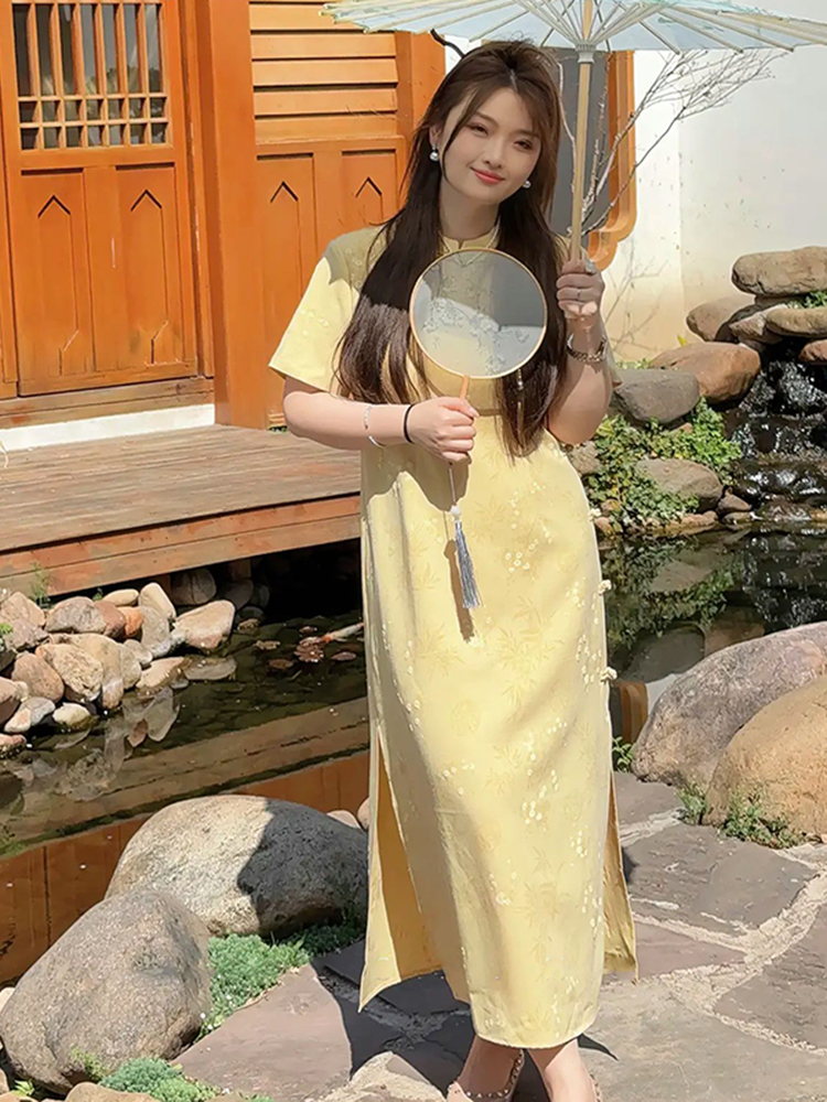 Elevate your wardrobe with our Plus-Size -Style Jacquard Cheongsam Dress, designed specifically for curvy figures. This elegant short-sleeve dress features a flattering fit that accentuates your curves while providing exceptional comfort. The intricate jacquard fabric adds a touch of sophistication, making it perfect for any occasion. Don’t miss out on this stunning piece add it to your cart today and embrace your style with confidence!