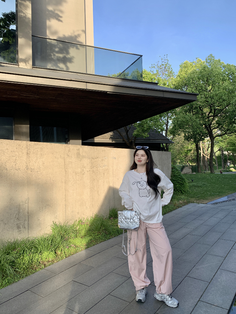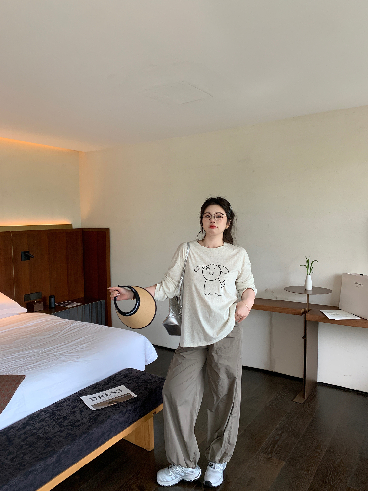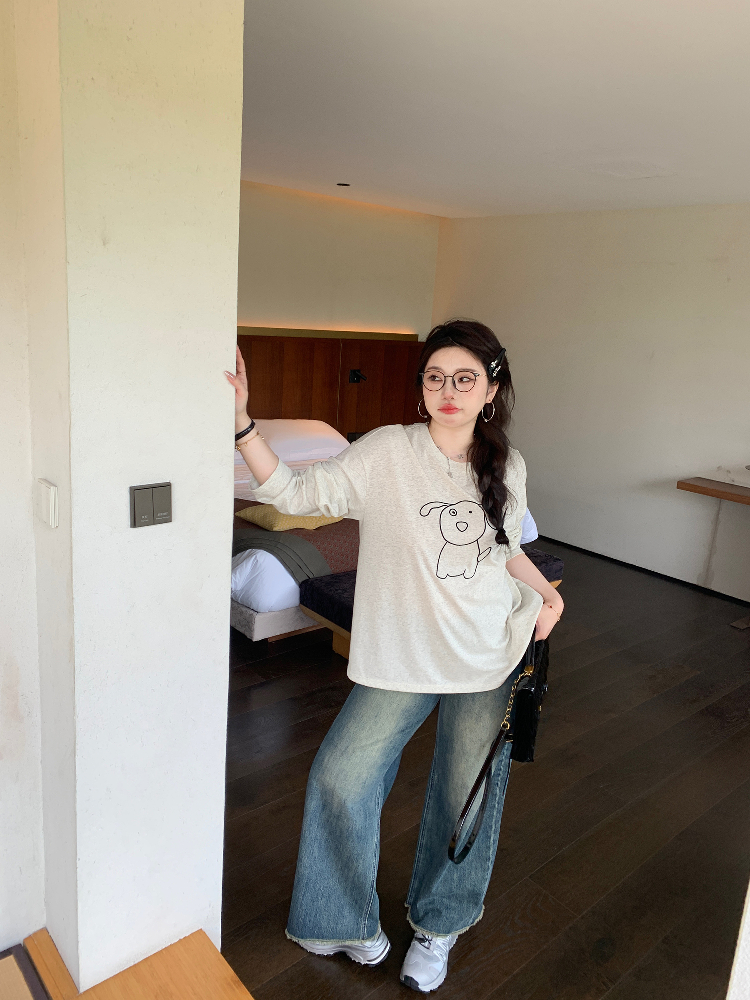 Plus Size Cute Cream Dog Print Long S – Plus Size Thanksgiving Outfit Ideas