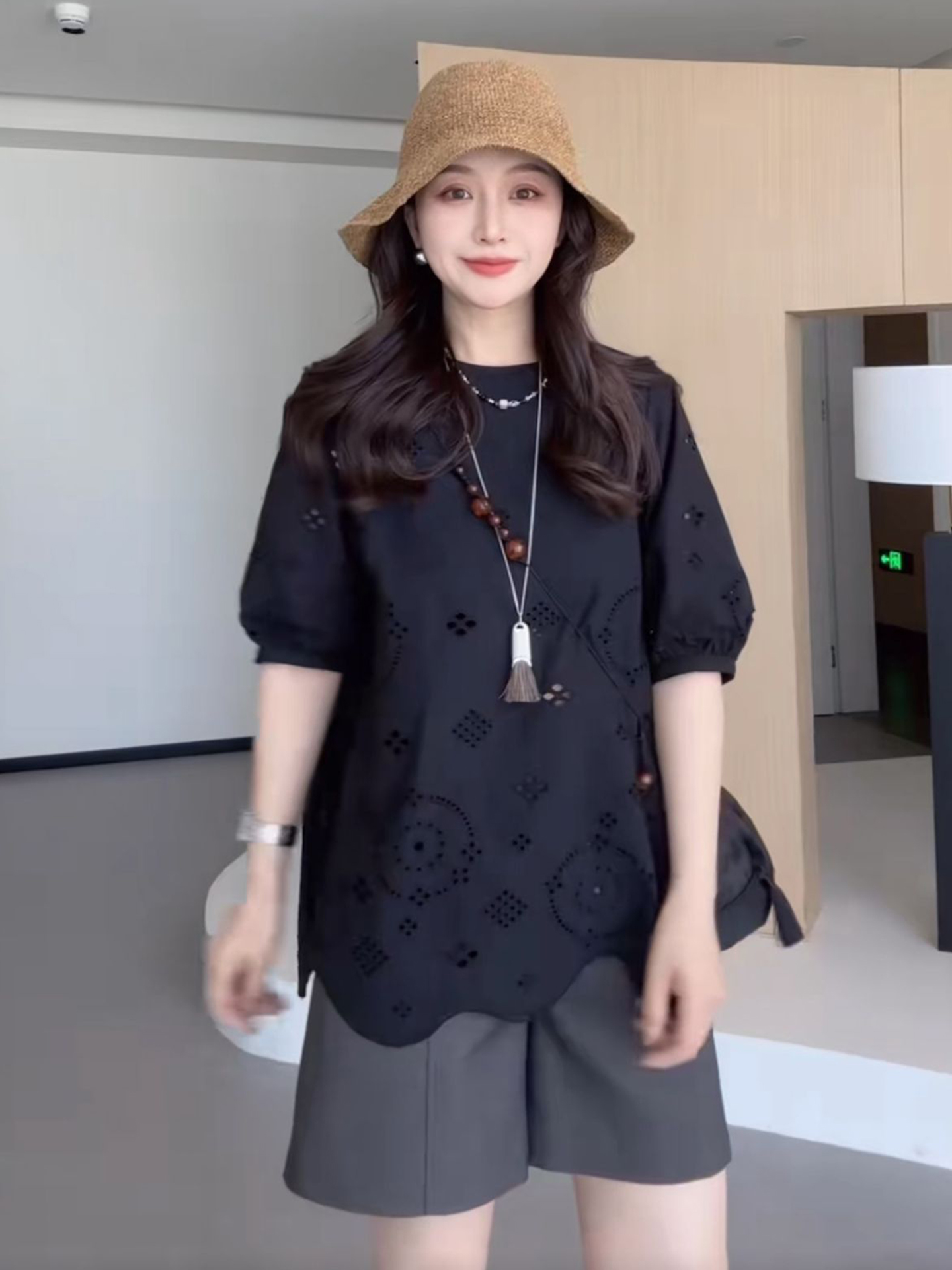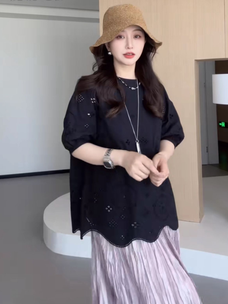 Plus Size Hollowed Out Lace Short Sleeve Shirt Women Flattering Loose Fit, Curvy Figures High-quality product featuring easy costumes women, plus size thanksgiving outfit ideas, going out outfits and more. Modern design that fits the latest trends. Premium materials ensure durability and comfort. Order now for special offers! Product designed with attention to every detail. Suitable for all occasions and personal styles.