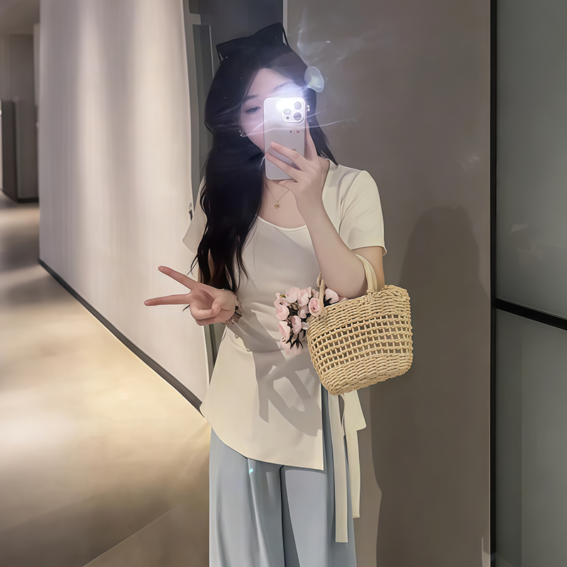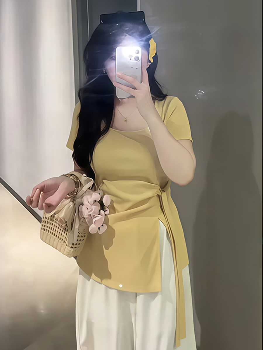 Elevate your summer wardrobe with our Plus-Size Irregular U-Neck Short Sleeve T-Shirt for Women, designed to flatter your figure with its cinched waist and relaxed fit. The chic French-inspired design adds a touch of elegance to your casual look, making it the perfect essential for warm days. Crafted for comfort and style, this versatile tee pairs beautifully with shorts or skirts. Don’t miss out on this must-have addition to your closet add to your cart today!