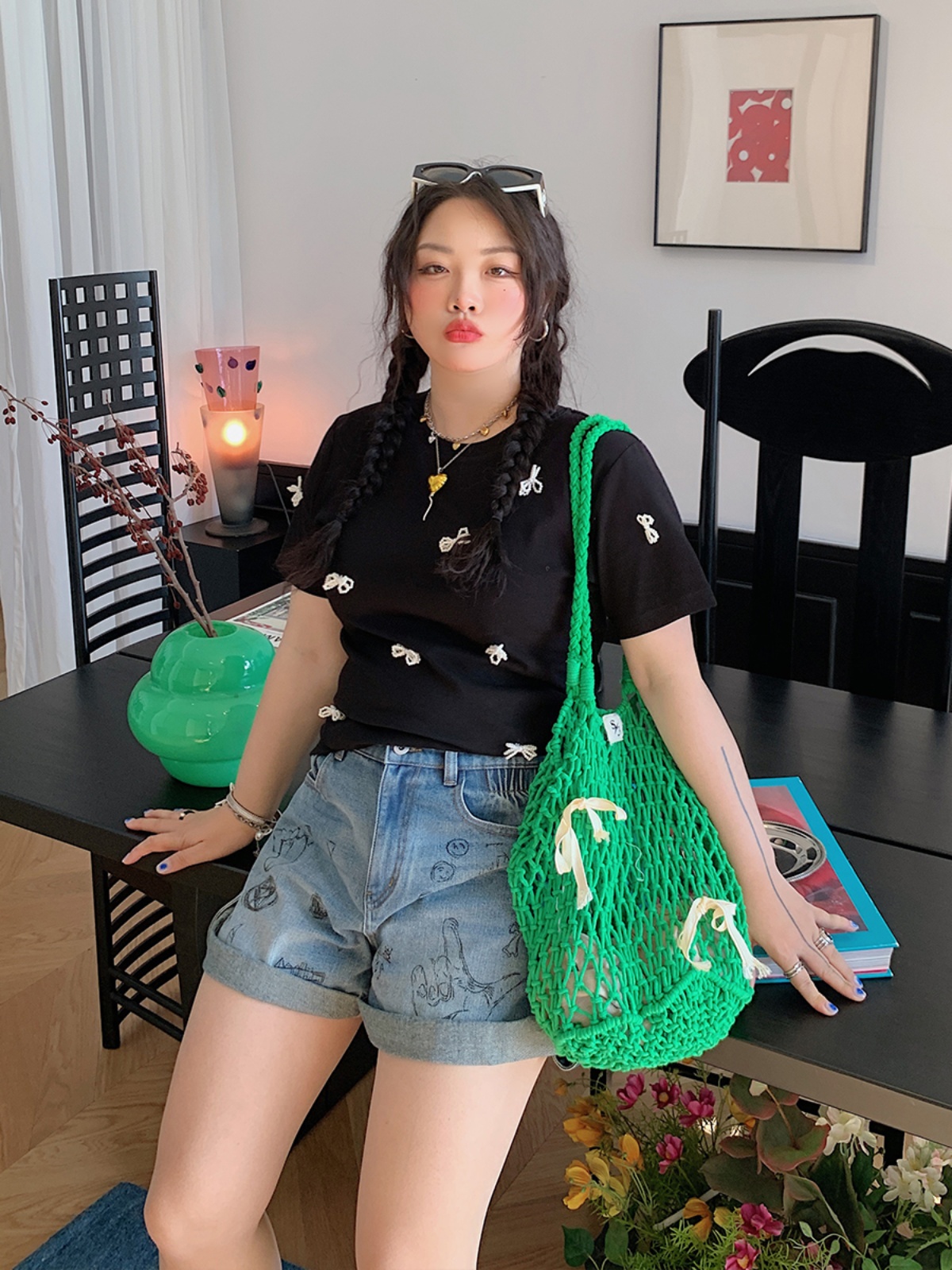 Elevate your summer wardrobe with our Plus Size Pearl Bow T-Shirt for Women, a stunning handmade piece designed for style and comfort. This chic short sleeve top features a playful pearl bow detail that adds a trendy touch, perfect for any casual outing or special occasion. With its flattering fit and breathable fabric, you’ll stay cool and fashionable all season long. Don’t miss out on this must-have addition to your closet add to your cart today!
