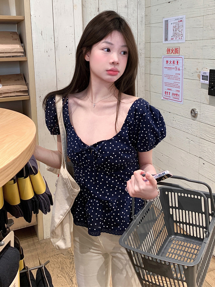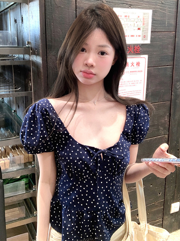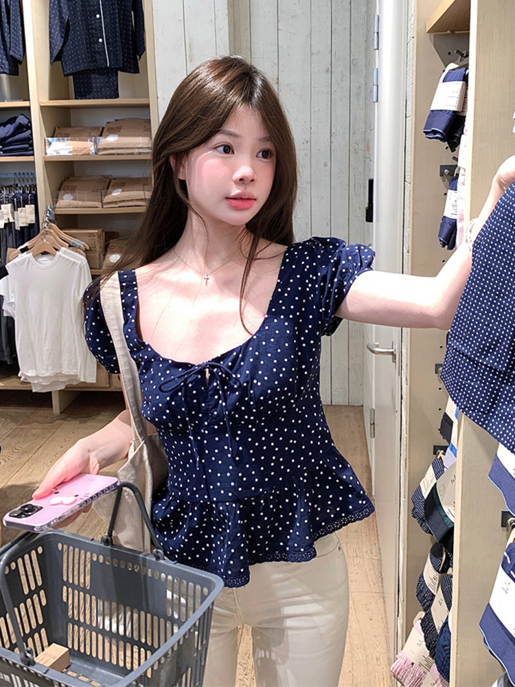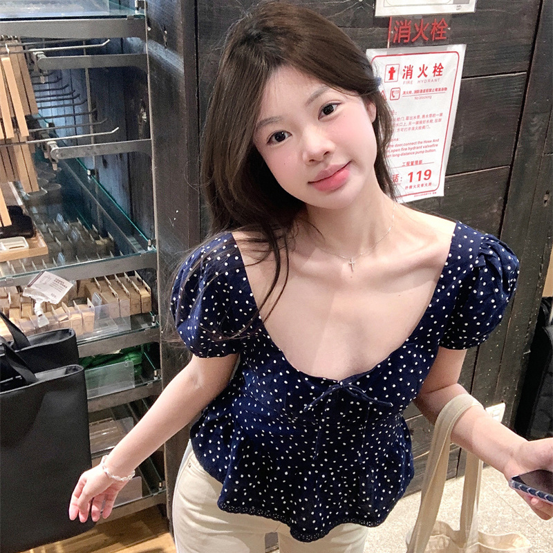 Plus Size Polka Dot U Neck Bubble Short Sleeve Shirt Women Summer Sweet Spicy Tummy Covering Top High-quality product featuring plus size thanksgiving outfit ideas, warm fall outfits, vacation outfits and more. Modern design that fits the latest trends. Premium materials ensure durability and comfort. Order now for special offers! Product designed with attention to every detail. Suitable for all occasions and personal styles.