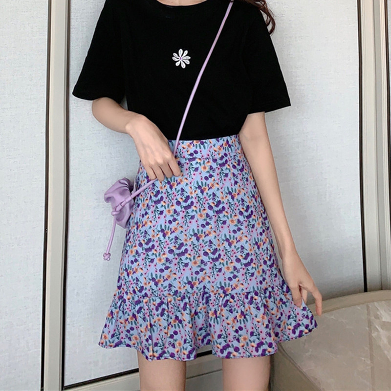 Plus Size Purple Floral Chiffon a Line Skirt Women, Summe – Mermaid Costume