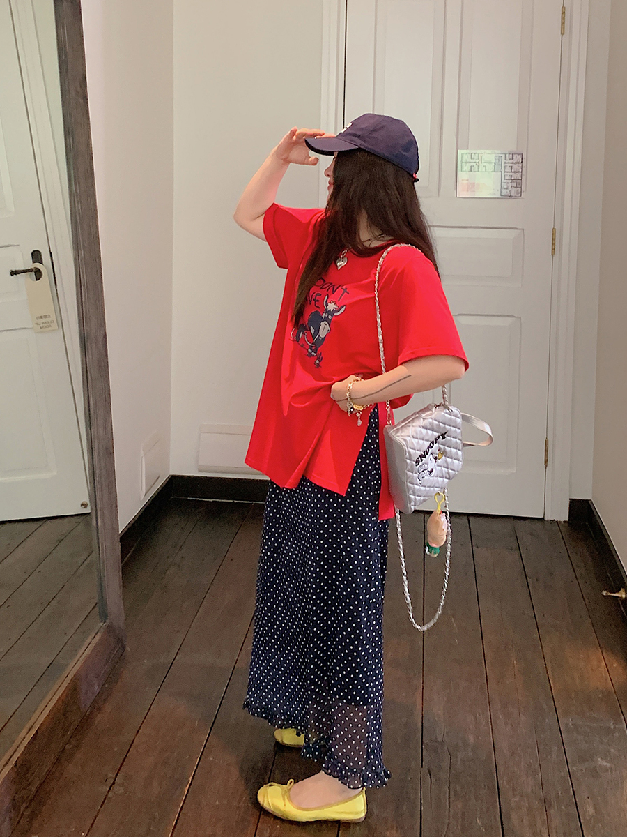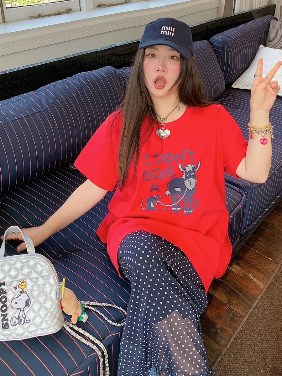 Plus Size Red Printed Short Sleeve Women Summer Gold Big Supp – Summer Fits