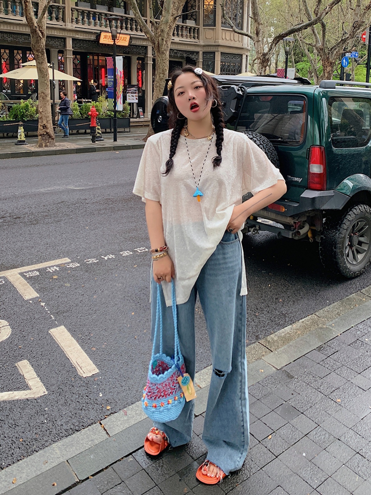 Plus Size Slit Diamond Women Short Sleeve White Top, Pring/su – Summer Fits