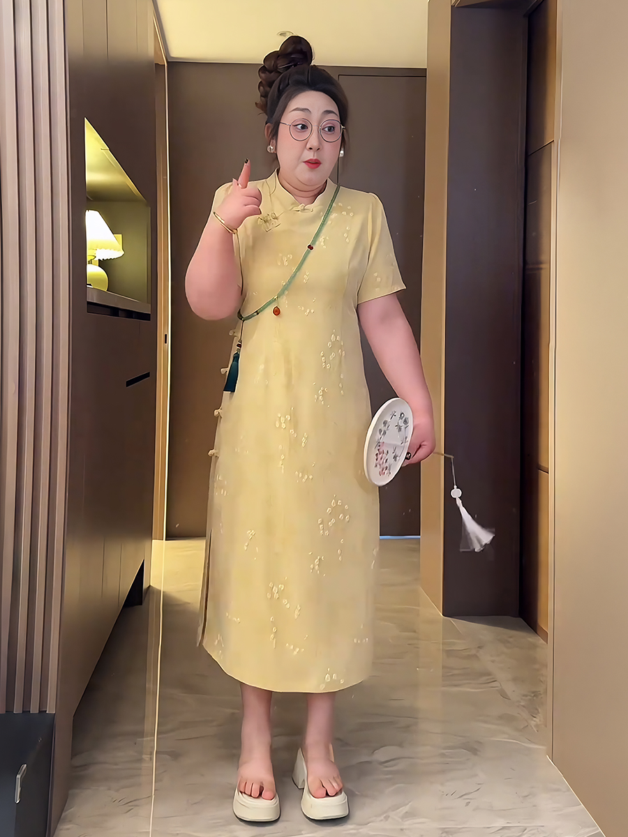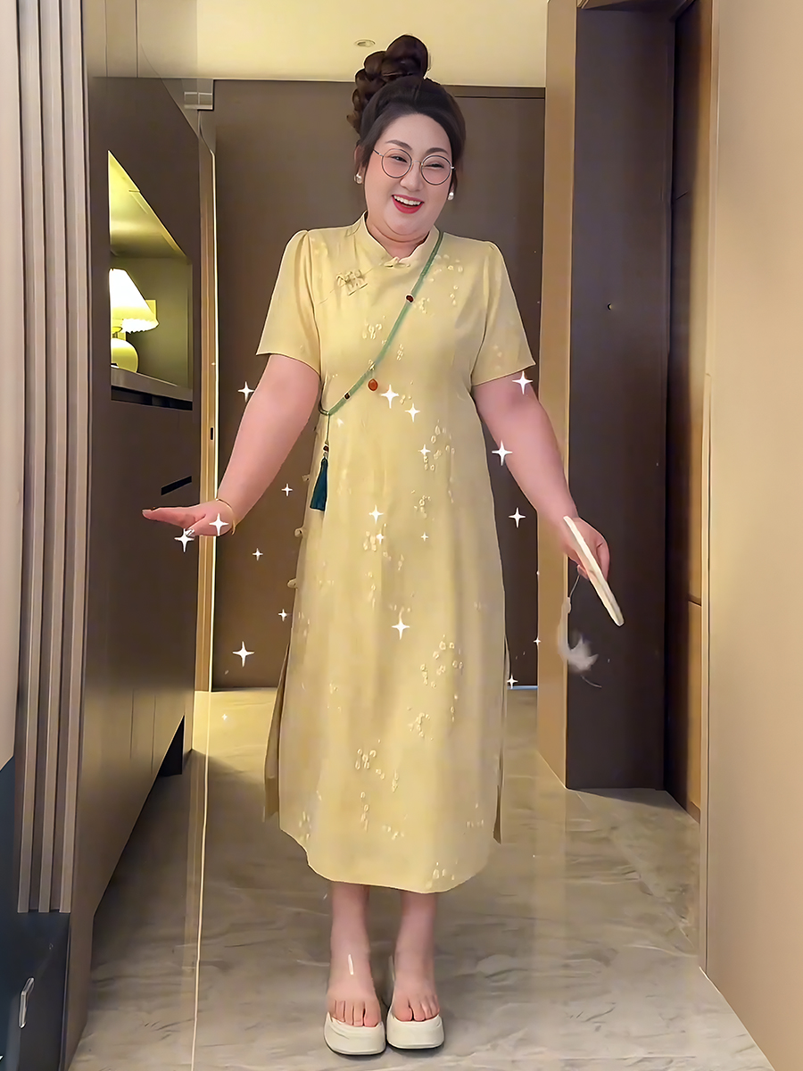 Embrace elegance with our Plus-Size Women’s Style Qipao Dress, featuring a stunning dark pattern tulle that beautifully drapes over your curves. This summer-ready piece showcases a refined button design, exuding an air of sophistication and traditional charm. Perfect for any occasion, its flattering fit enhances your natural silhouette while offering comfort and style. Don’t miss the opportunity to elevate your wardrobe add this exquisite dress to your cart today!