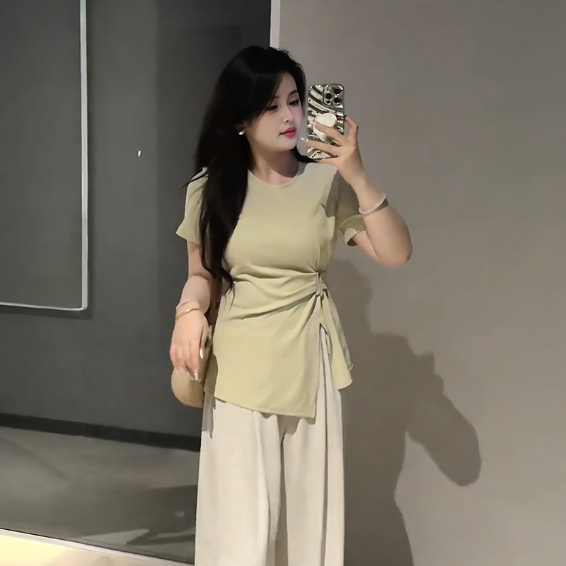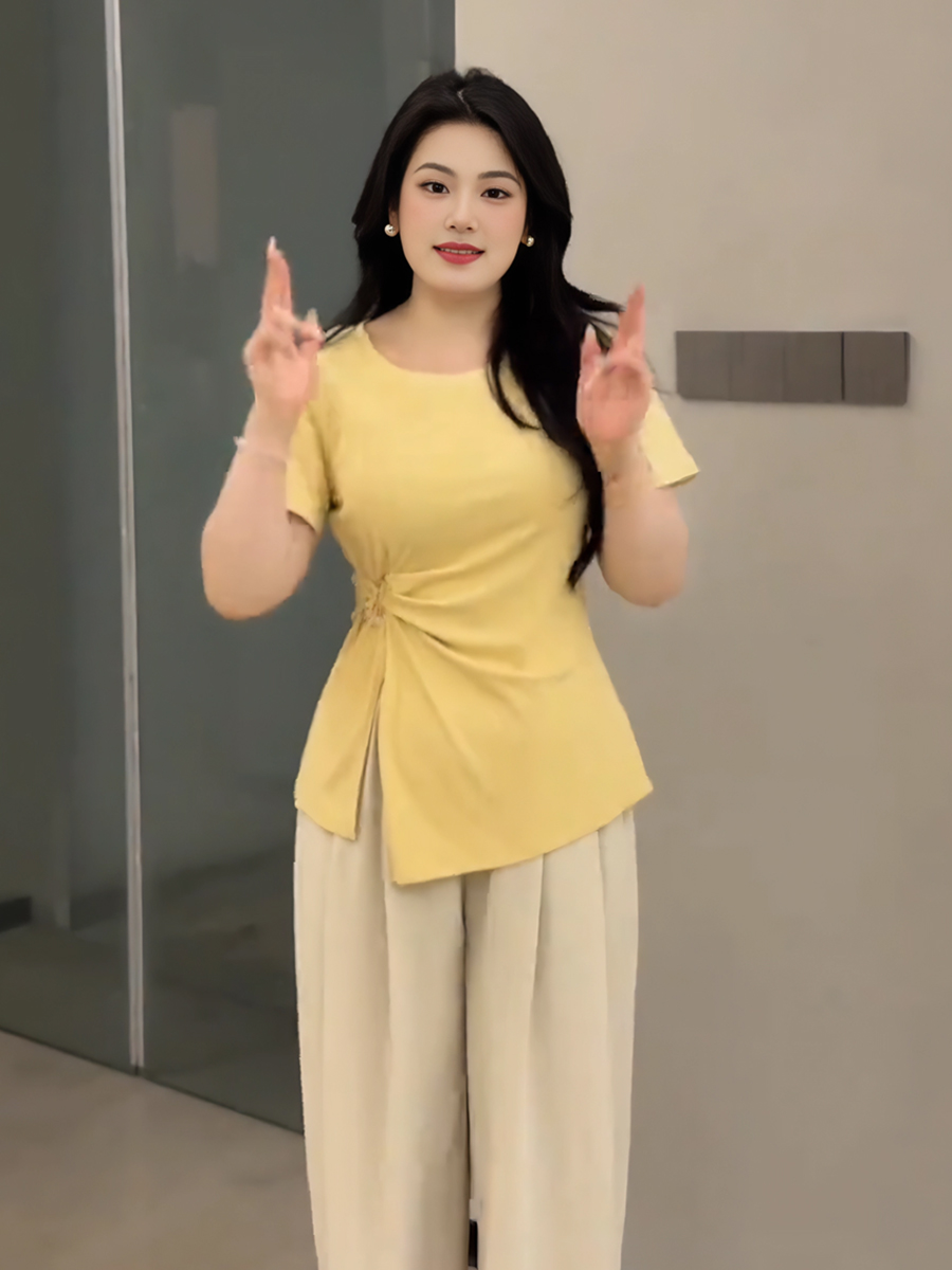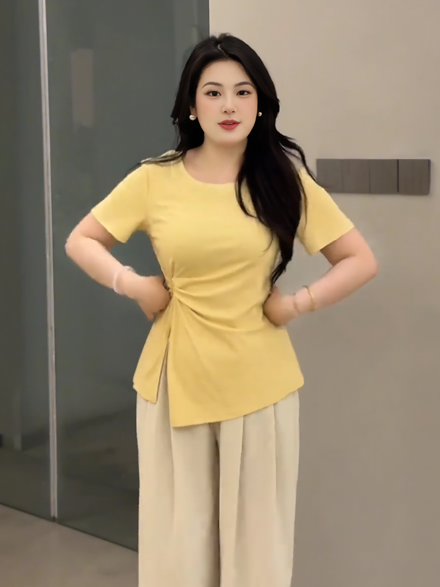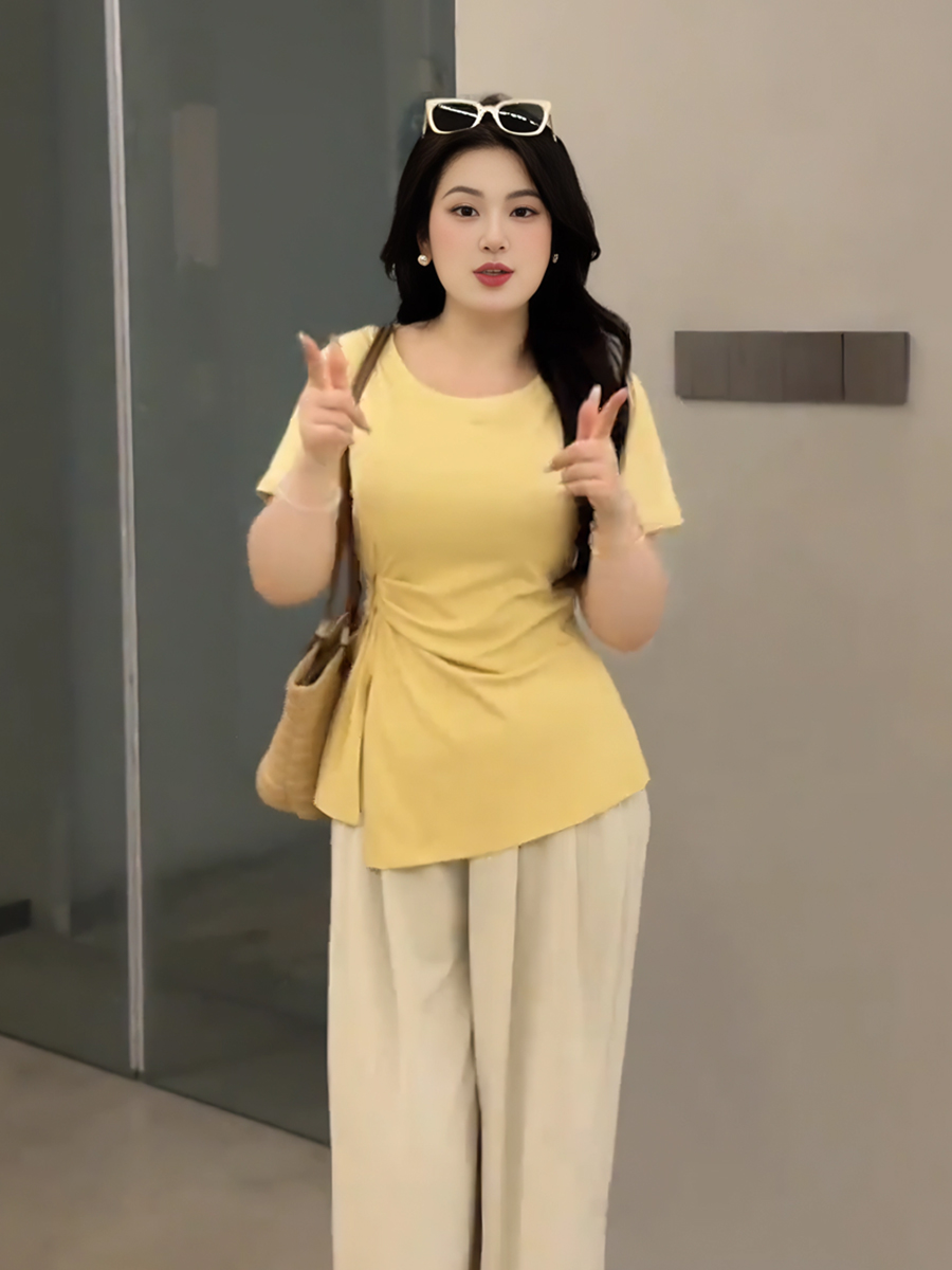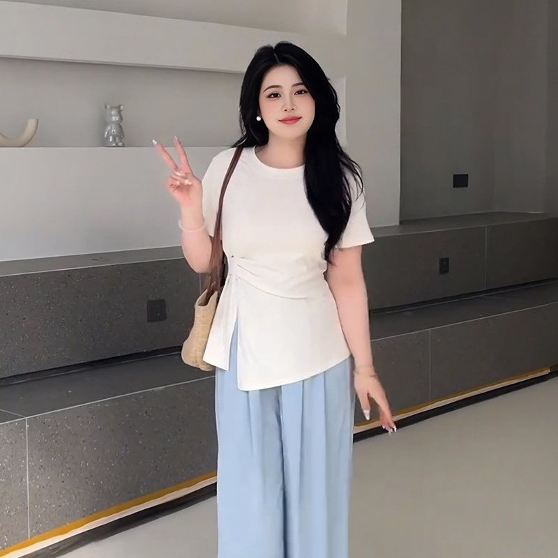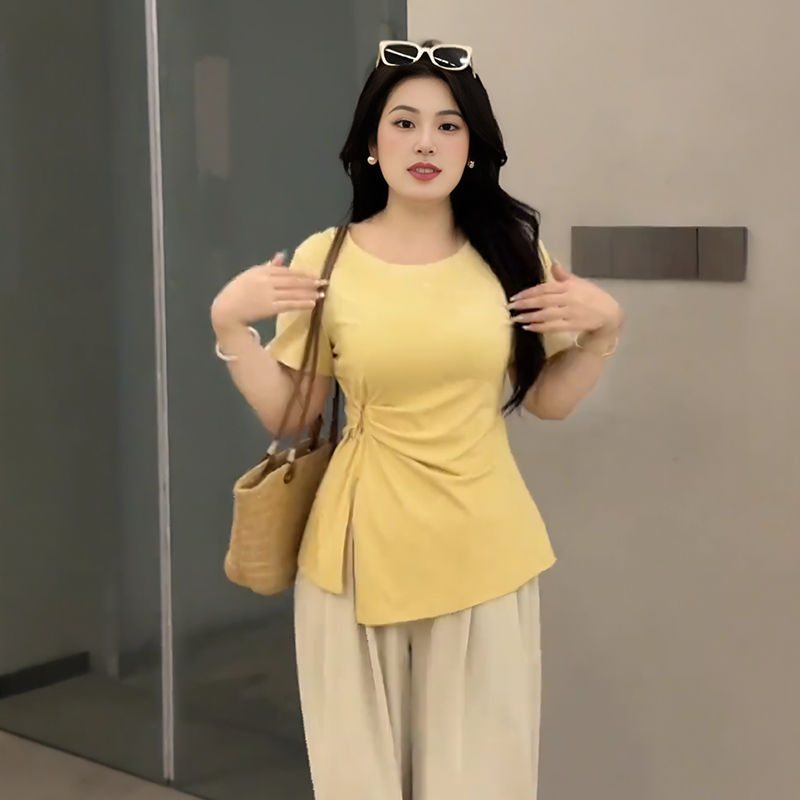 Elevate your summer wardrobe with our Plus-Size Women’s French Design Short-Sleeve T-Shirt, featuring a unique irregular cut that flatters your curves. This tummy-covering split top is designed specifically for curvy styles, offering both comfort and a chic silhouette that transitions effortlessly from day to night. Perfect for pairing with your favorite jeans or shorts, it’s a must-have addition to your collection. Don’t wait add to your cart today and embrace your style with confidence!