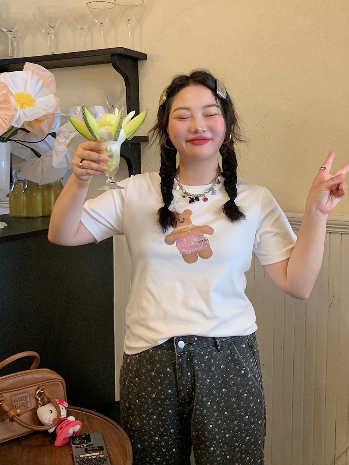 Plus Size Women Little Bear Short Sleeve White Base Layer Top, Casual Korean High-quality product featuring plus size thanksgiving outfit ideas, cute winter outfits, cute everyday outfits and more. Modern design that fits the latest trends. Premium materials ensure durability and comfort. Order now for special offers! Product designed with attention to every detail. Suitable for all occasions and personal styles.