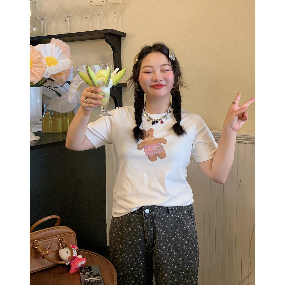 Elevate your casual wardrobe with our Plus Size Women’s Little Bear Short Sleeve T-Shirt, a stylish 2025 new addition to your collection. Designed with a comfortable fit and crafted from soft, breathable fabric, this white base layer top features an adorable little bear graphic that perfectly captures the essence of Korean style fashion. Ideal for layering or wearing solo, it’s a versatile piece that pairs effortlessly with jeans or shorts. Don’t miss out on this trendy essential add it to your cart today!