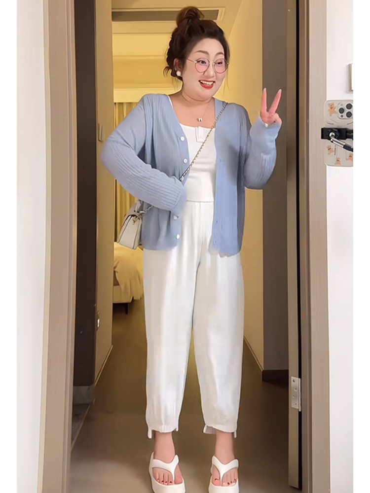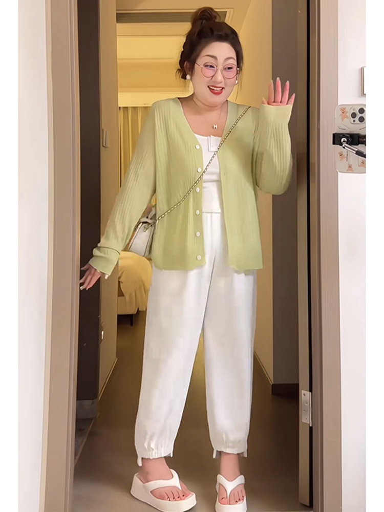 Plus Size Women Summer Ice Silk Knitted Cardigan Lightweight – Summer Fits