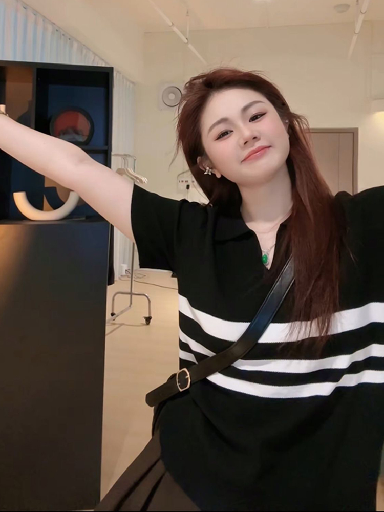 Plus Size Women Summer Short Sleeve Striped Polo Collar Knitted Top Youth High-quality product featuring plus size christmas outfit, casual summer outfits, winter fits and more. Modern design that fits the latest trends. Premium materials ensure durability and comfort. Order now for special offers! Product designed with attention to every detail. Suitable for all occasions and personal styles.