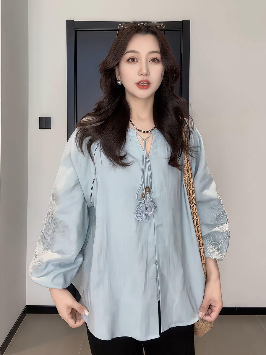 Elevate your summer wardrobe with our Plus-Size Women’s Vintage Embroidered V-Neck Shirt, designed to flatter curvy figures with its loose, breezy fit. The intricate embroidery adds a touch of elegance, making it perfect for any occasion, while the versatile French style ensures you look chic and stylish wherever you go. Embrace comfort without sacrificing fashion add this essential top to your cart today and enjoy effortless summer style!