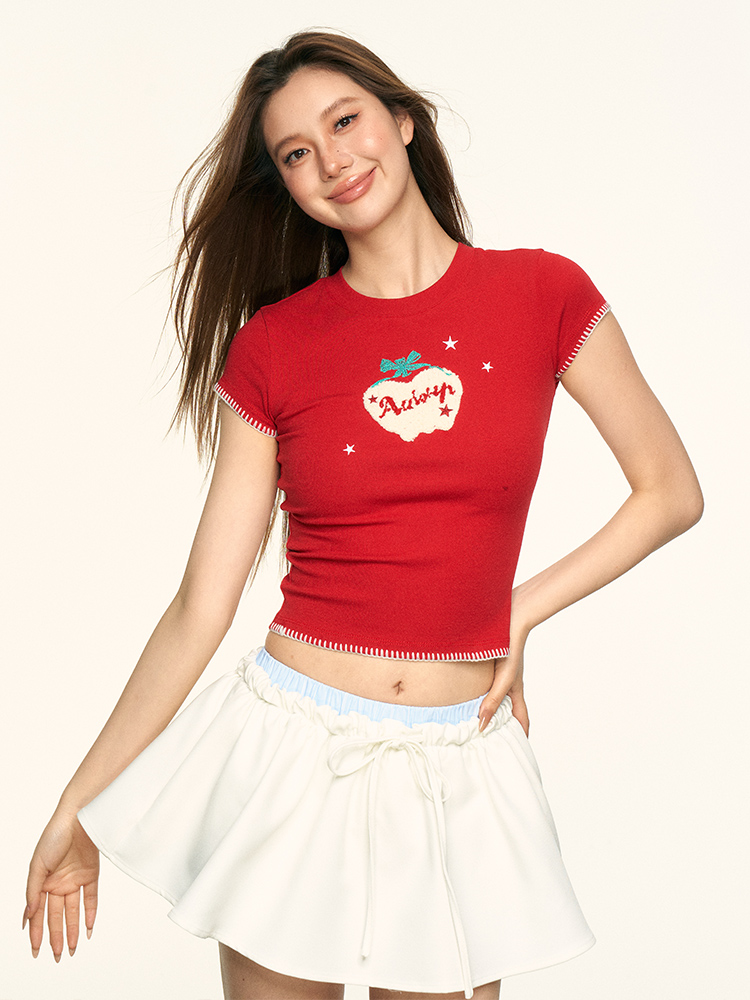 Red Embroidered Apple Neck Short Sleeve Women Summer Slim Fit Spicy Top High-quality product featuring summer fits, warm fall outfits, fall outfits women and more. Modern design that fits the latest trends. Premium materials ensure durability and comfort. Order now for special offers! Product designed with attention to every detail. Suitable for all occasions and personal styles.