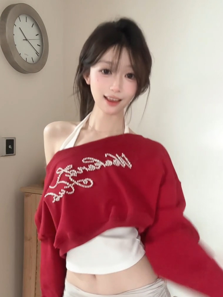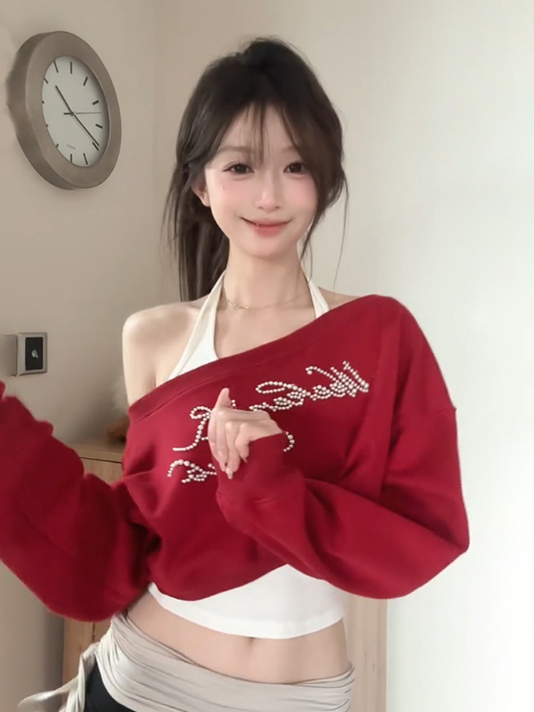 Elevate your spring wardrobe with this stunning Red Off-Shoulder Sweatshirt Set for Women. Featuring a trendy loose fit and stylish long sleeves, this two-piece outfit is adorned with eye-catching rhinestone letter details that make a bold fashion statement. Perfect for casual outings or lounging in style, this set combines comfort and chic effortlessly. Don’t miss out on this must-have addition to your collection add to your cart today!