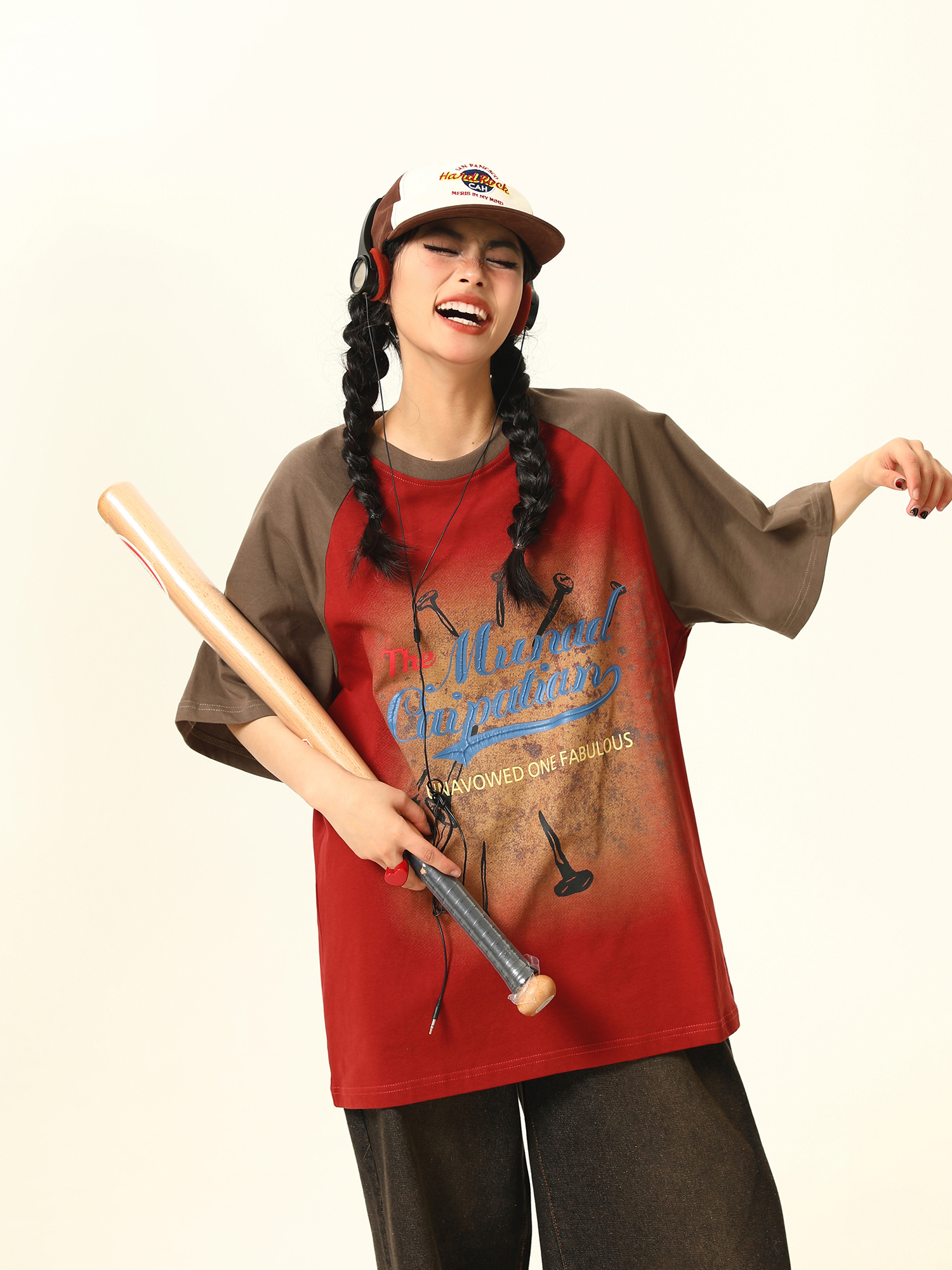 Retro Raglan Short Sleeve Women Summer Loose Tee High-quality product featuring casual summer outfits, vacation outfits, fall outfits women and more. Modern design that fits the latest trends. Premium materials ensure durability and comfort. Order now for special offers! Product designed with attention to every detail. Suitable for all occasions and personal styles.