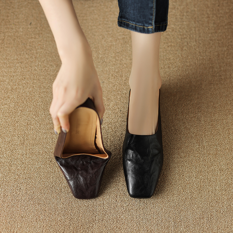 Step into a world of retro elegance with our Retro High-End Genuine Leather Open-Toe Half Slippers. Designed with a chic square toe and flat mule silhouette, these stylish shoes effortlessly blend Y2K and 90s-inspired fashion for a timeless look. Crafted from premium leather, they offer a luxurious fit and exceptional comfort, making them perfect for any occasion. Whether you’re dressing up or down, these mules are the ideal addition to your wardrobe. Don’t miss out on this must-have piece; add to your cart and elevate your style today!