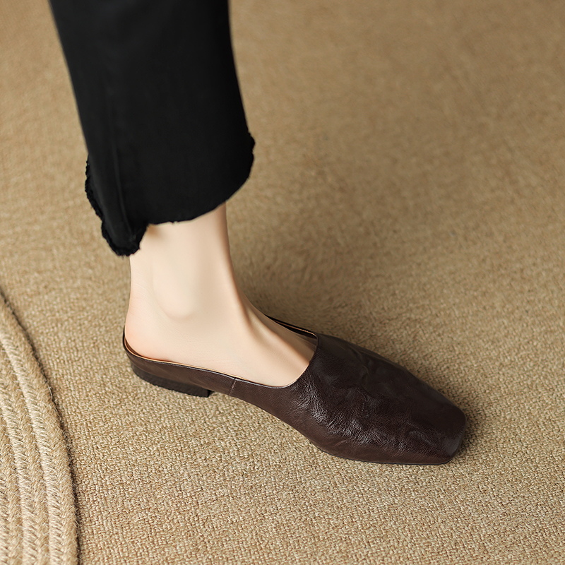 Retro Genuine Leather Open Toe Half Slippers for Trendy Y2k Outfits High-quality product featuring 2000s fashion, 90s fashion, outfit inspo fall and more. Modern design that fits the latest trends. Premium materials ensure durability and comfort. Order now for special offers! Product designed with attention to every detail. Suitable for all occasions and personal styles.