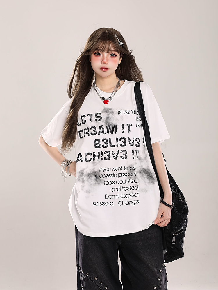 Elevate your summer wardrobe with our Retro Letter Print Short-Sleeve T-Shirt for Women, designed for a casual yet stylish look. This vintage-inspired tee features a relaxed, loose fit that ensures all-day comfort while making a bold fashion statement. Perfect for pairing with your favorite shorts or jeans, this trendy top is a must-have for any fashion-forward individual. Don’t miss out on this essential piece add it to your cart today and embrace effortless style!