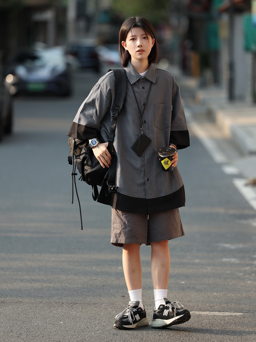 Retro Loose Short Sleeve Men Plaid Shirt Two Splicing Summer – Summer Fits