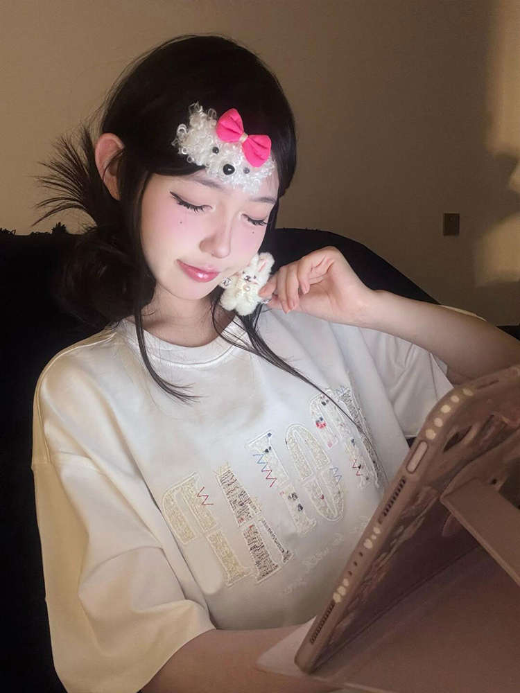 Elevate your summer wardrobe with our Round Neck Short Sleeve T-Shirt for Women, designed for a relaxed yet stylish look. This heavyweight casual top features eye-catching letter embroidery that adds a playful touch to your outfit, while its loose fit ensures all-day comfort and breathability. Perfect for pairing with jeans or shorts, this American-style tee is a must-have for effortless chic. Don’t miss out on this versatile essential add it to your cart today!