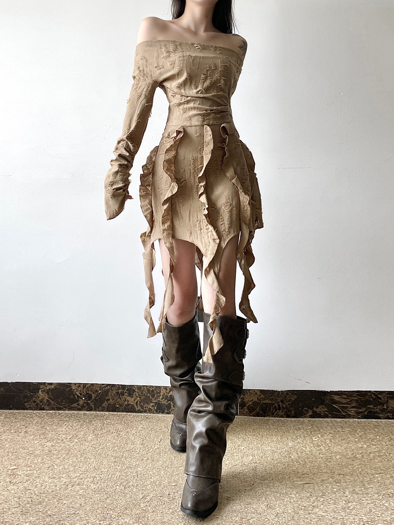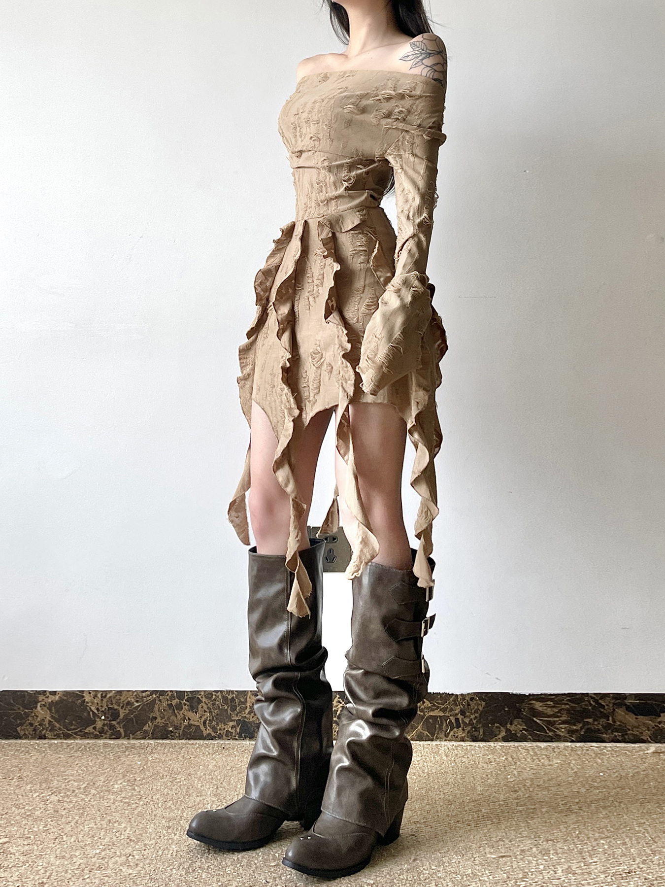 Elevate your wardrobe with our Ruffled Tassel Distressed Light Denim Off-Shoulder Mini Skirt, designed for the free-spirited woman who embodies boho chic style. This playful piece features a flattering off-shoulder design and charming ruffles, perfectly complemented by stylish tassels and a trendy distressed finish. Whether you’re strolling through a festival or enjoying a weekend getaway, this versatile mini skirt offers a comfortable fit and effortless style. Don’t miss out on this must-have addition to your collection add it to your cart today!
