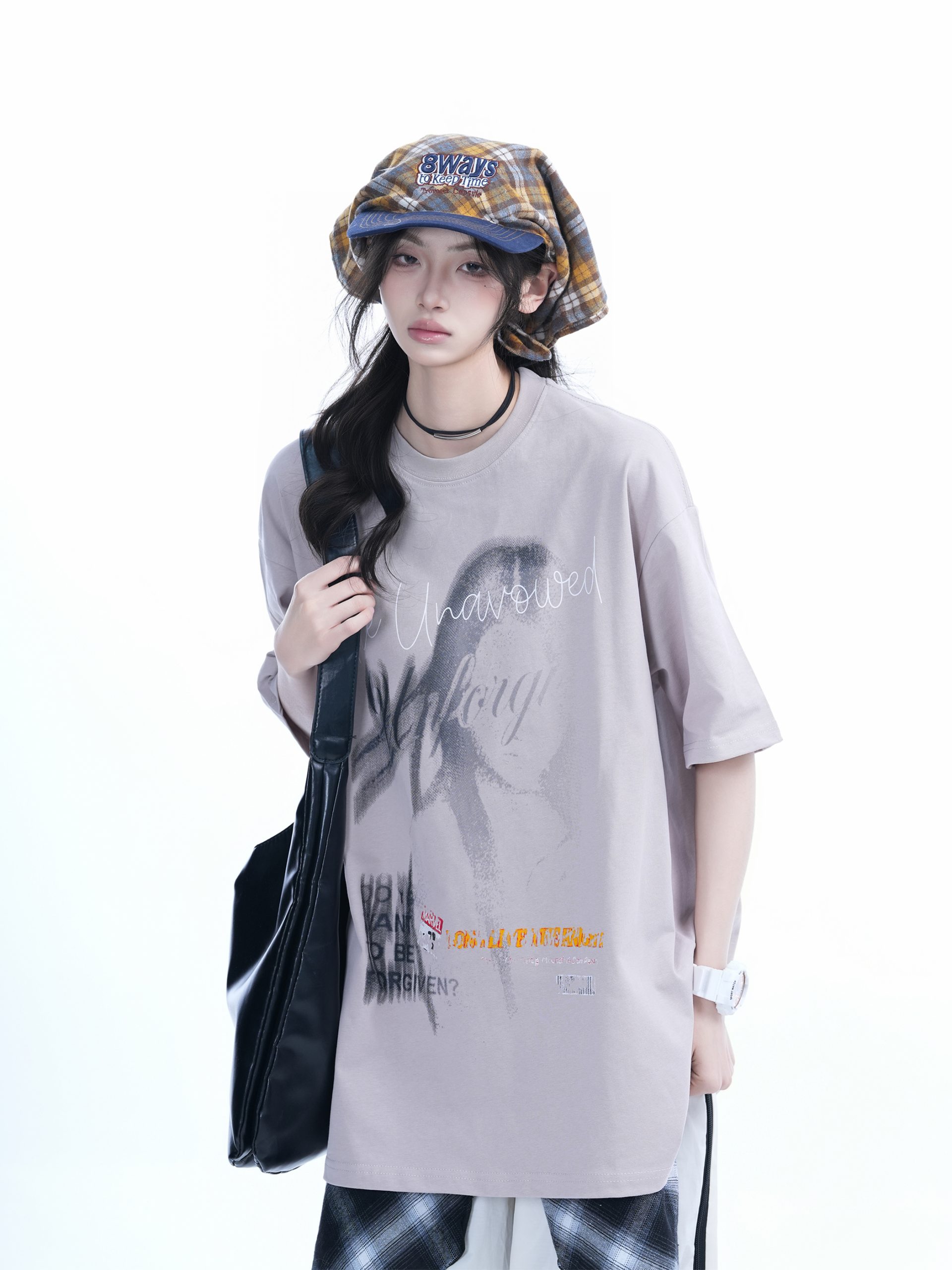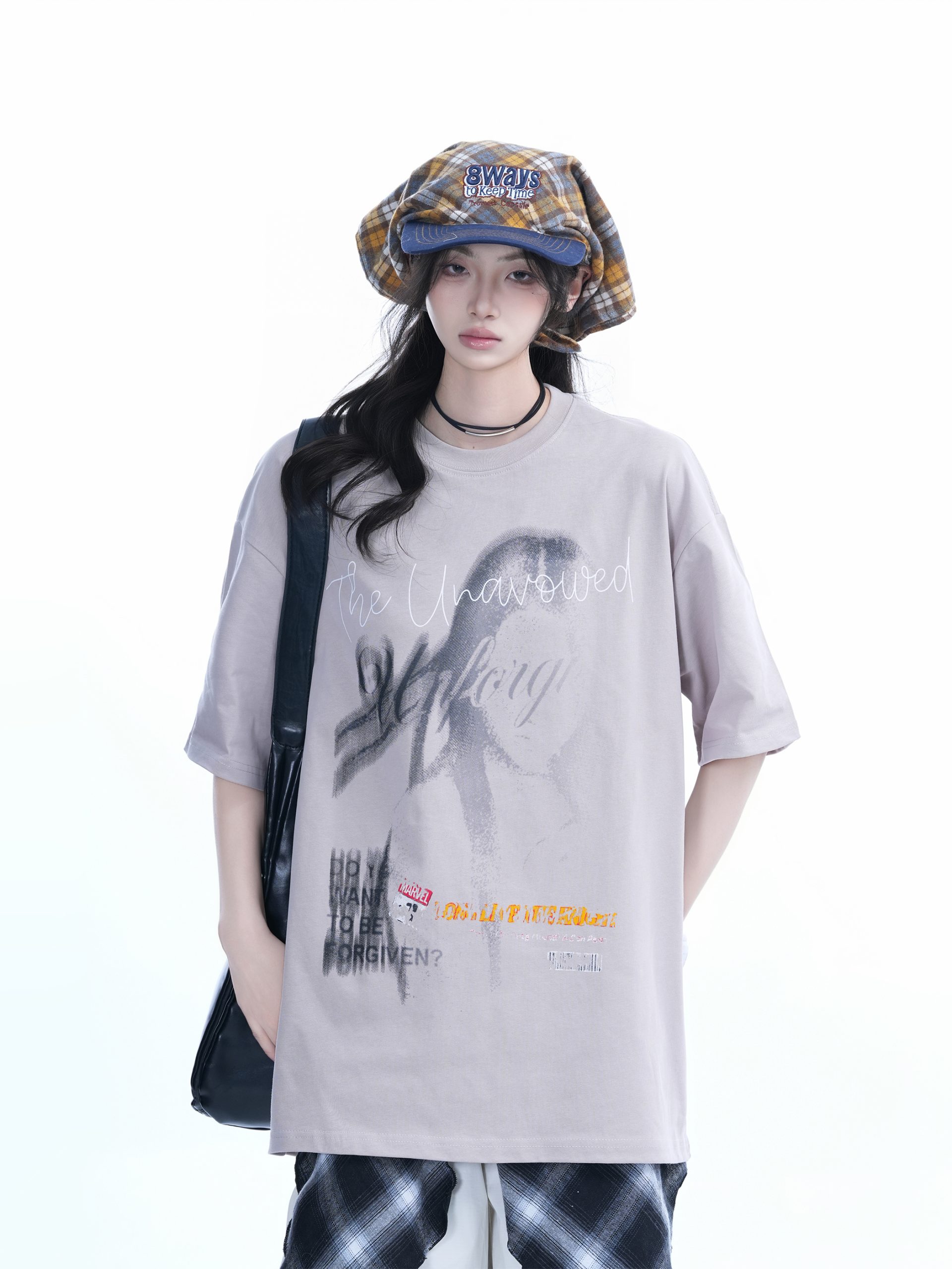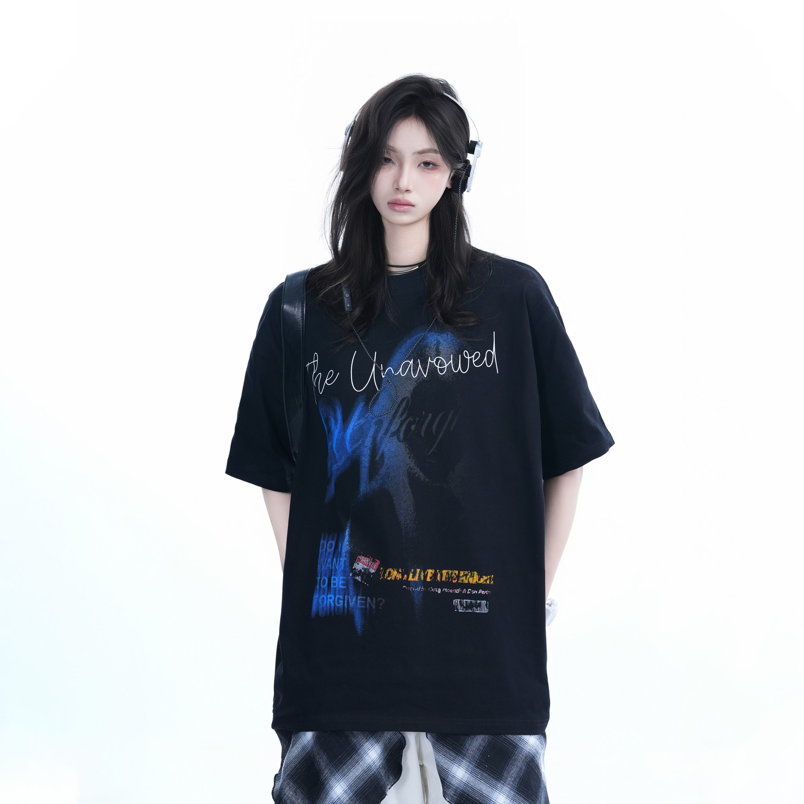 Shadow Girl Graphic Black Short Sleeve Women Summer Loose Fit – Summer Fits