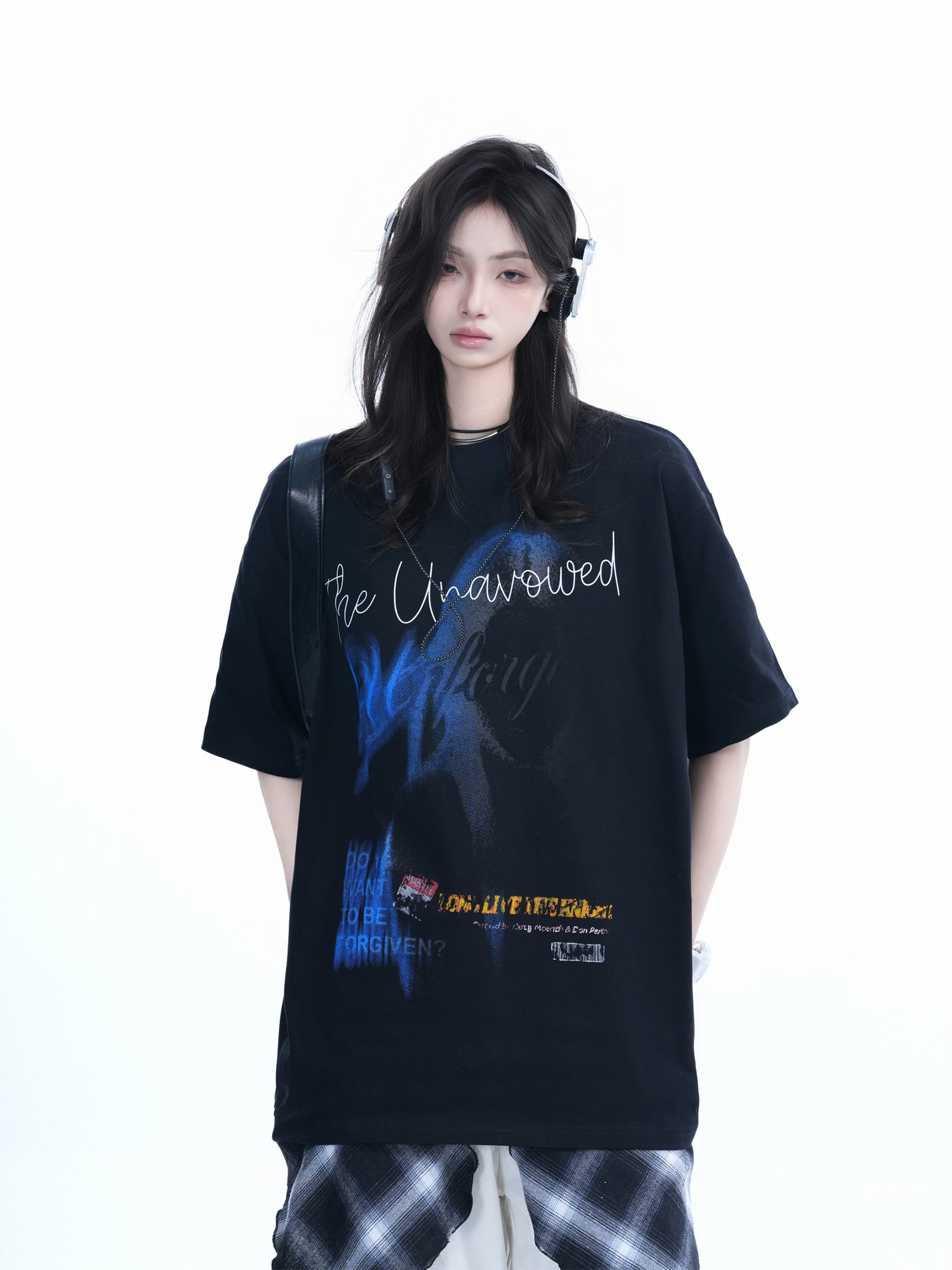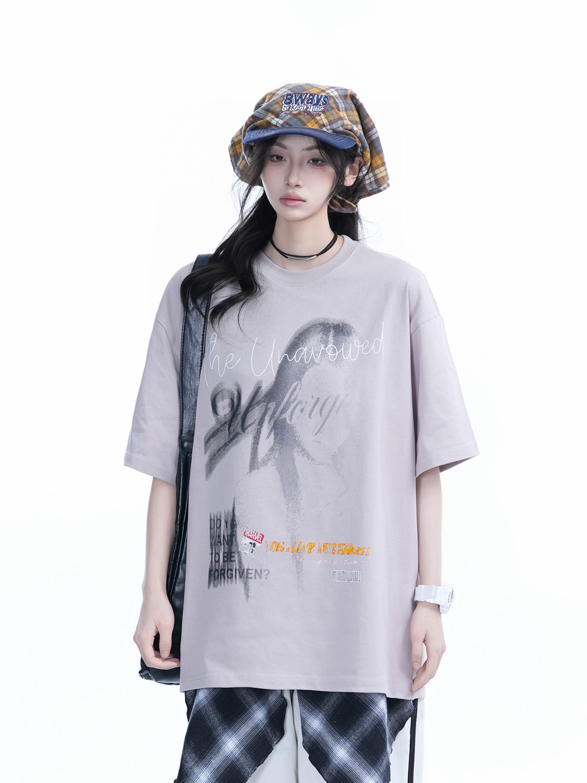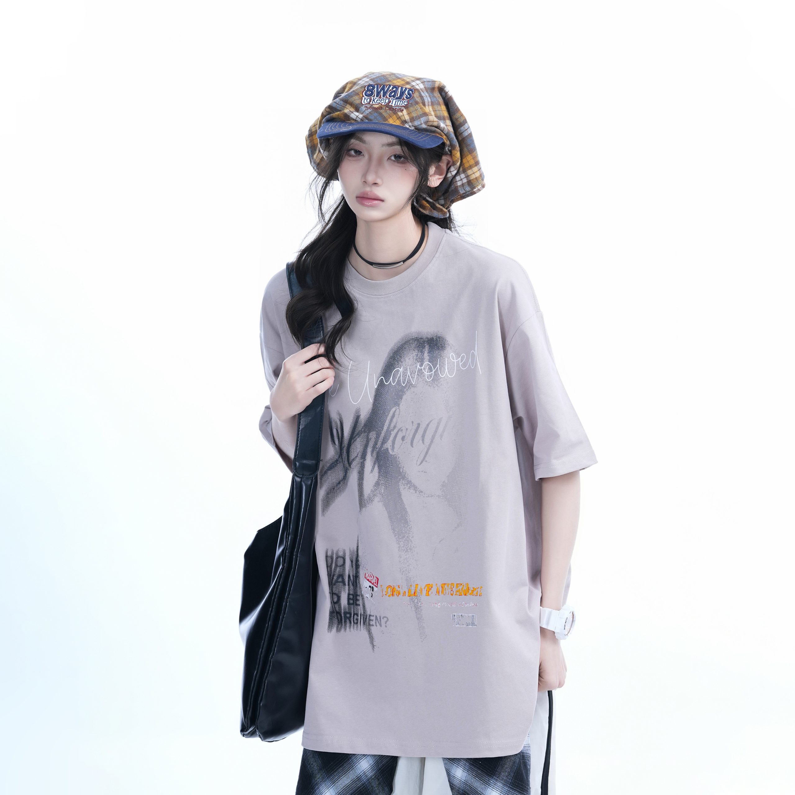 Shadow Girl Graphic Black Short Sleeve Women Summer Loose Fit – Summer Fits