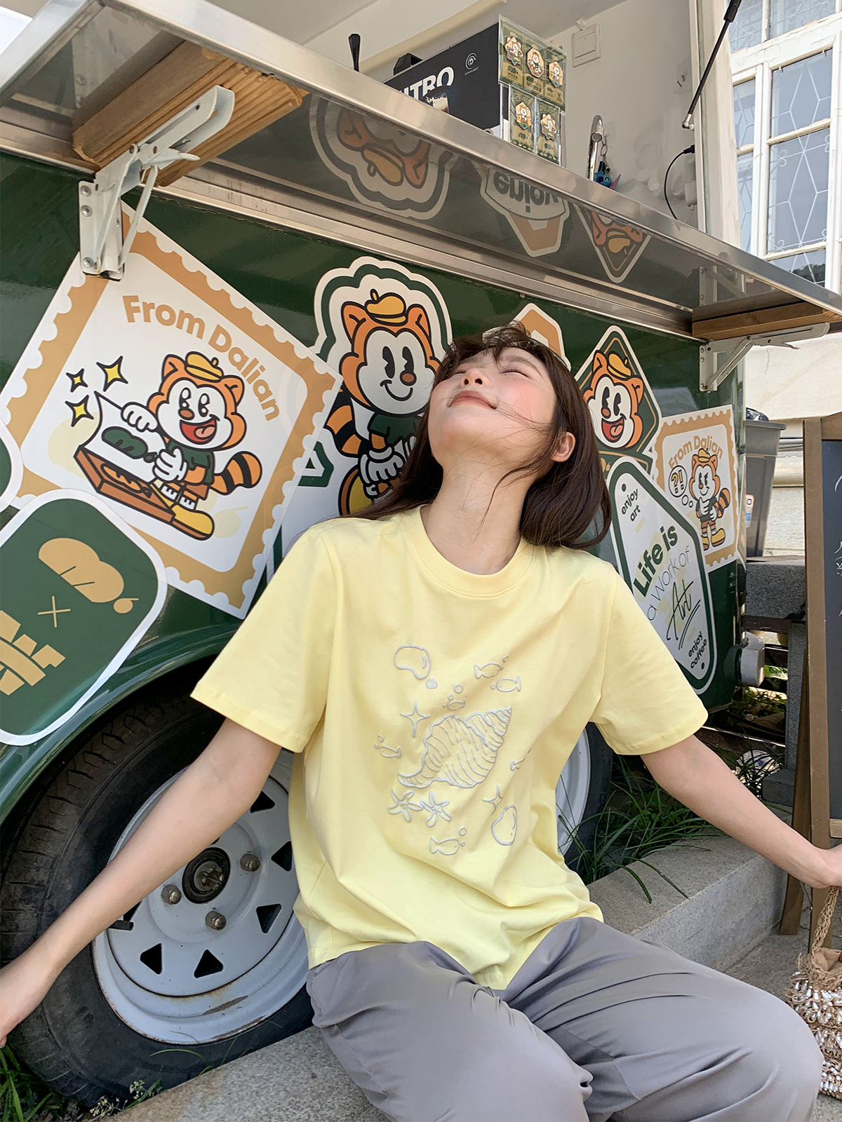 Silver 3d Conch Print Cotton Top: Stylish Summer Fits for Women