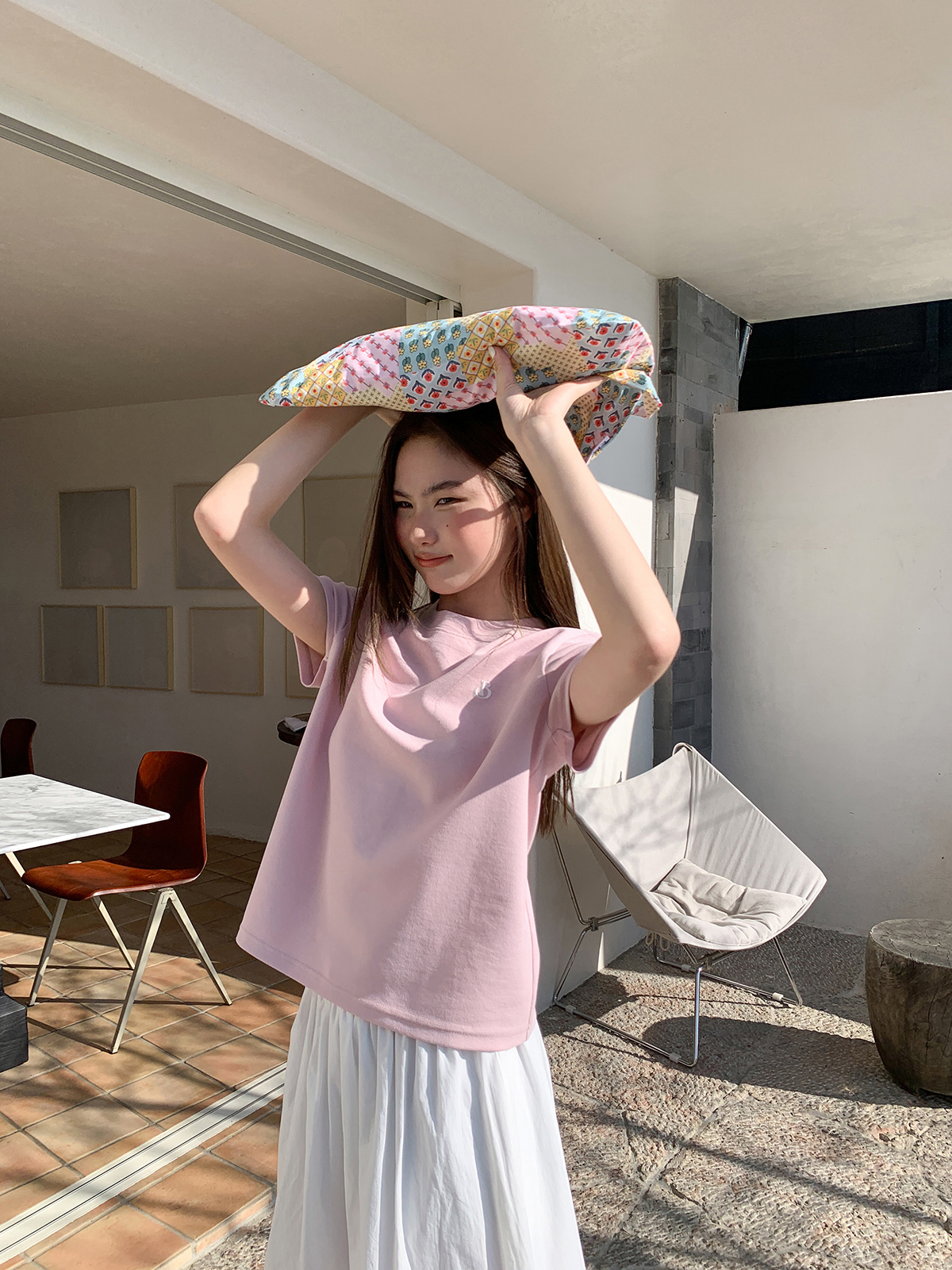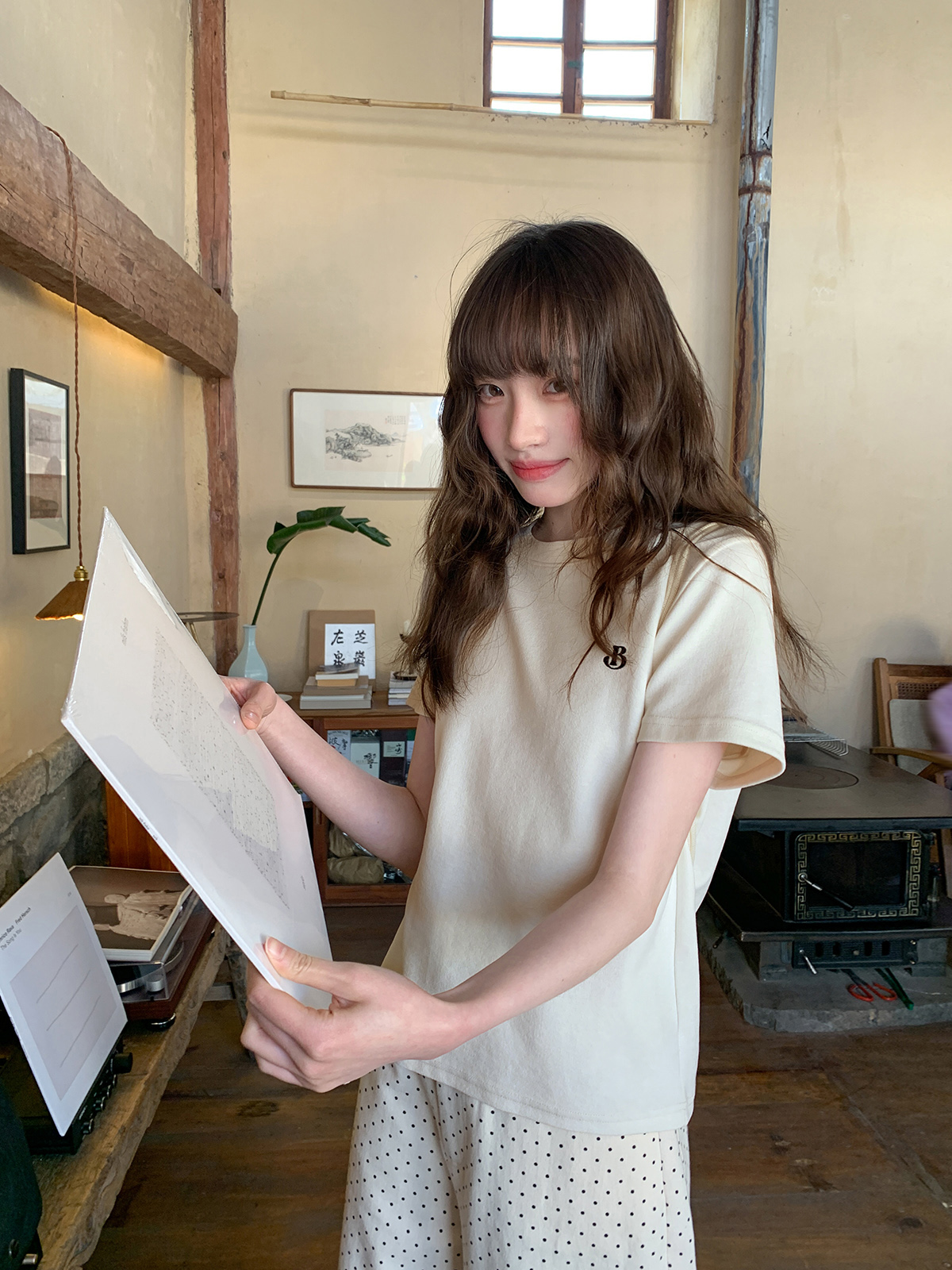 Simple Letter Embroidery Neck Short Sleeve Women Summer Top, – Y2k Outfits