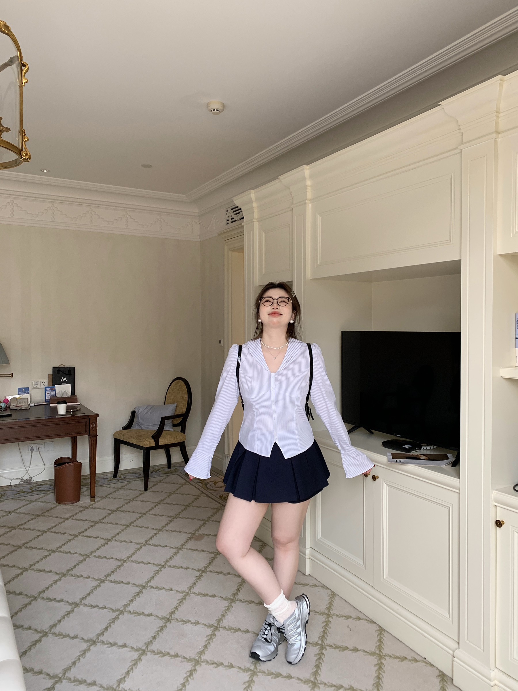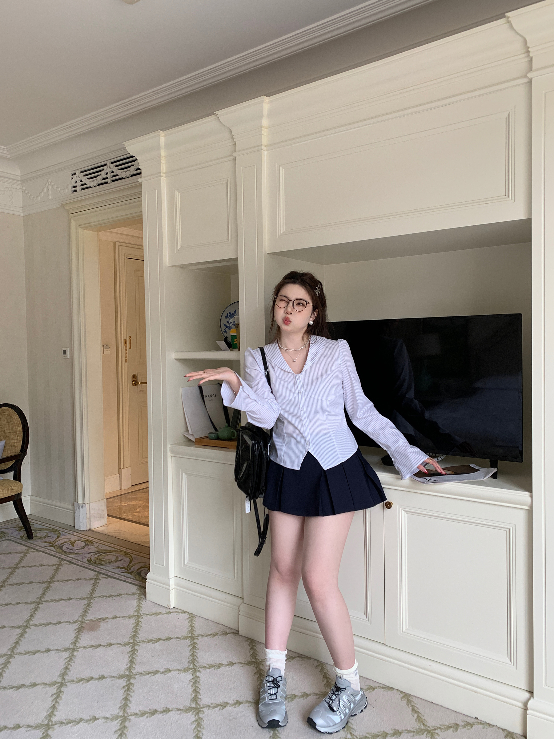 Slightly Chubby White Long Sleeve Shirt WaiStripes Casual Top Wear High-quality product featuring casual outfits winter, casual winter outfits, going out outfits and more. Modern design that fits the latest trends. Premium materials ensure durability and comfort. Order now for special offers! Product designed with attention to every detail. Suitable for all occasions and personal styles.