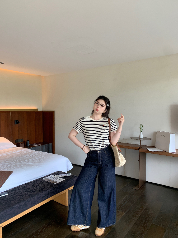 Elevate your summer wardrobe with our Slightly Chubby Striped Casual T-Shirt, designed for a flattering fit that complements your curves. This short sleeve tee features a stylish striped pattern and a slimming silhouette, making it the perfect addition to your Y2K-inspired outfits. Crafted from soft, breathable fabric, it ensures all-day comfort while keeping you effortlessly chic. Embrace versatility and pair it with your favorite denim or skirts for any occasion. Don’t miss out on this essential piece add it to your cart today!