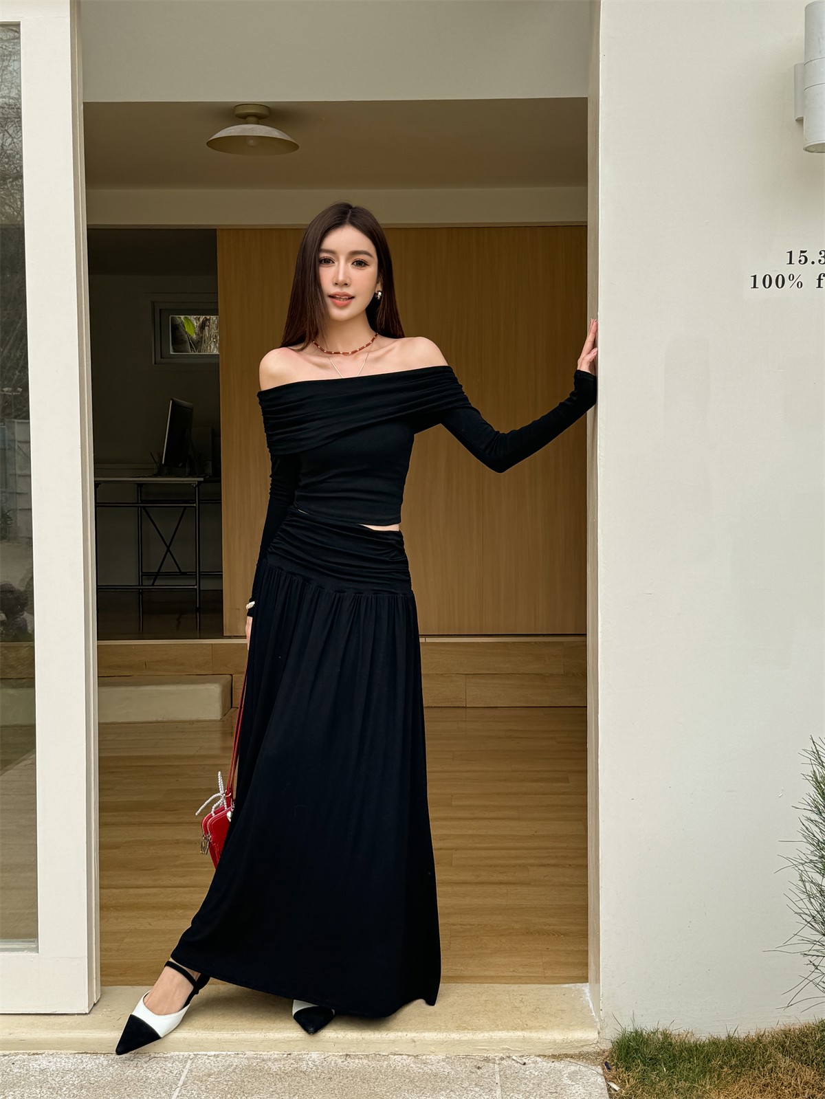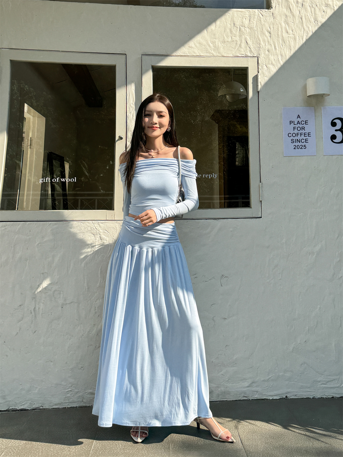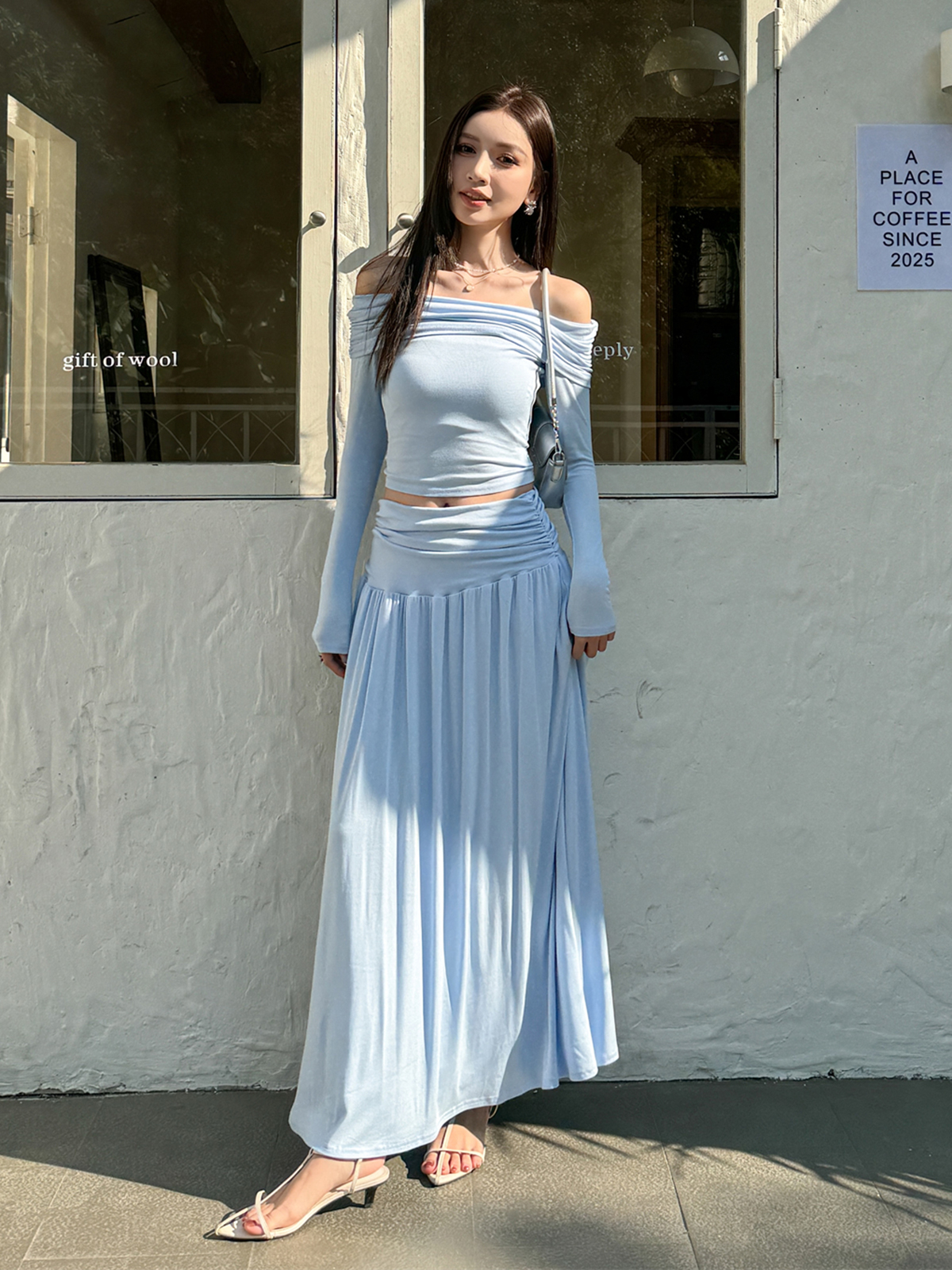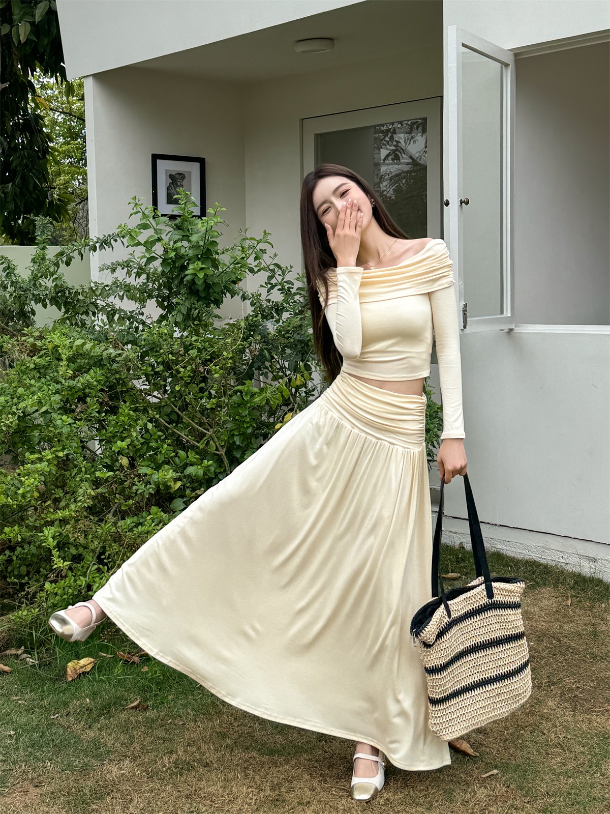 Stylish Spring Outfit: Slim Fit One Shoulder Top and Pleated Skirt Set