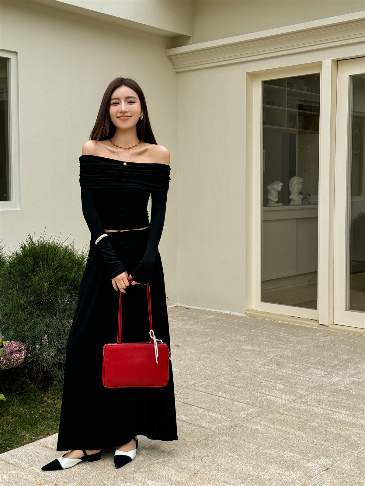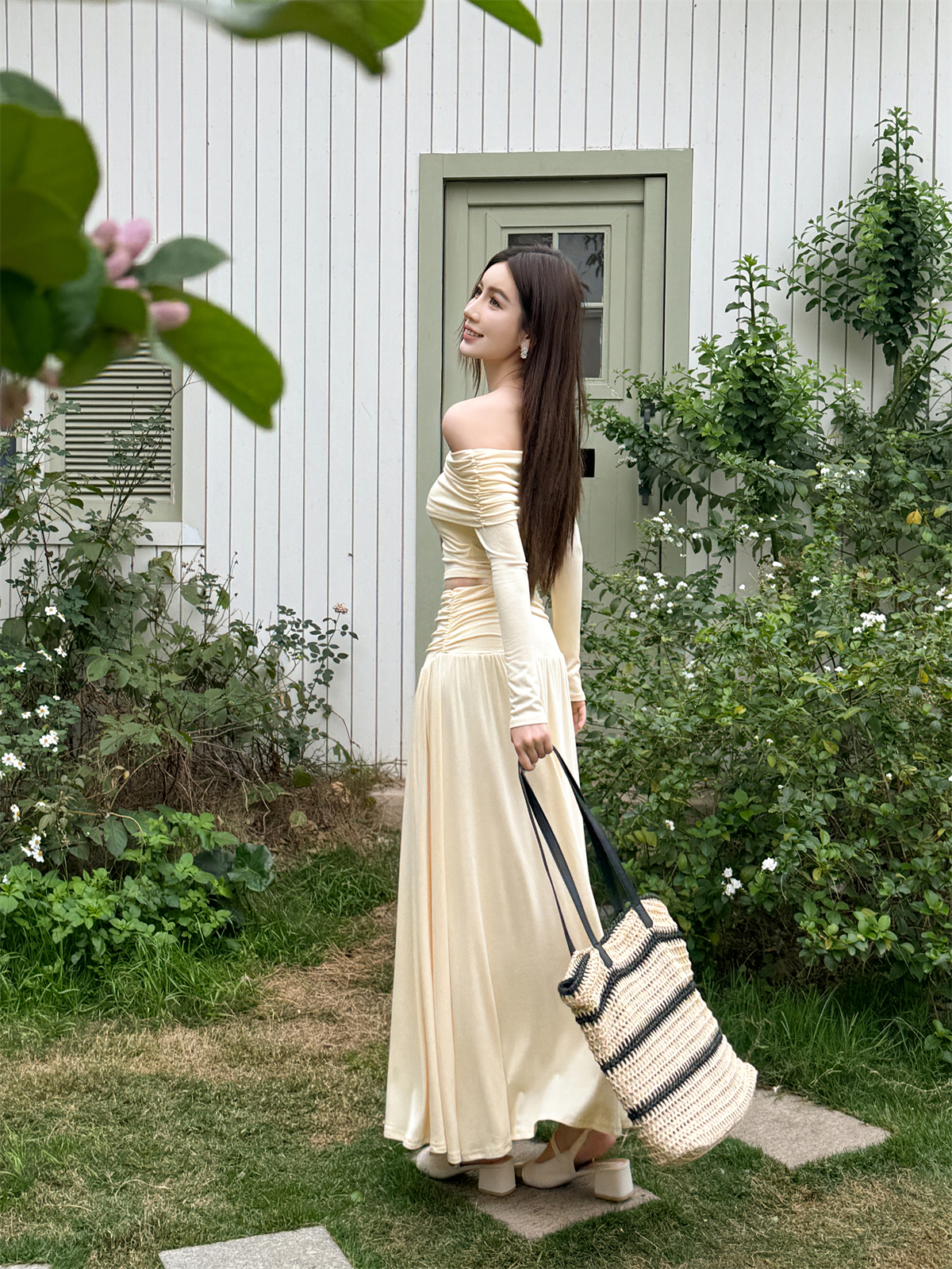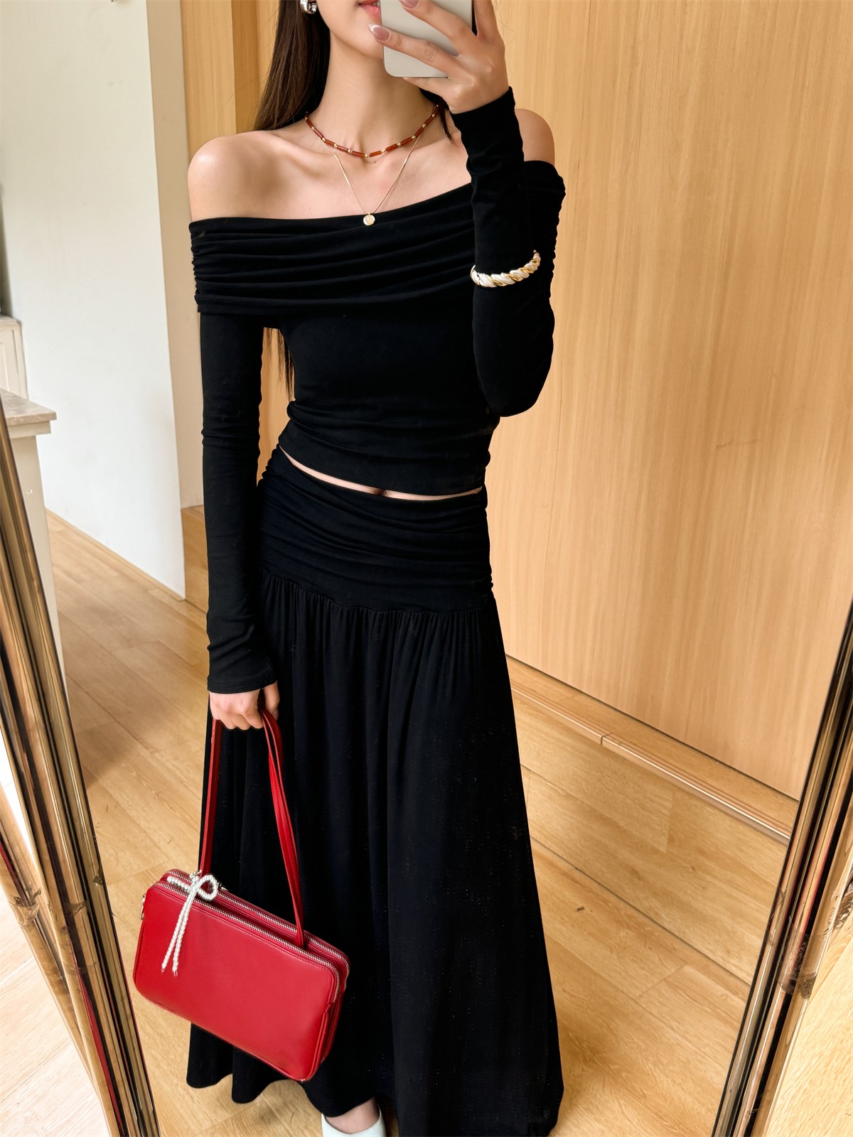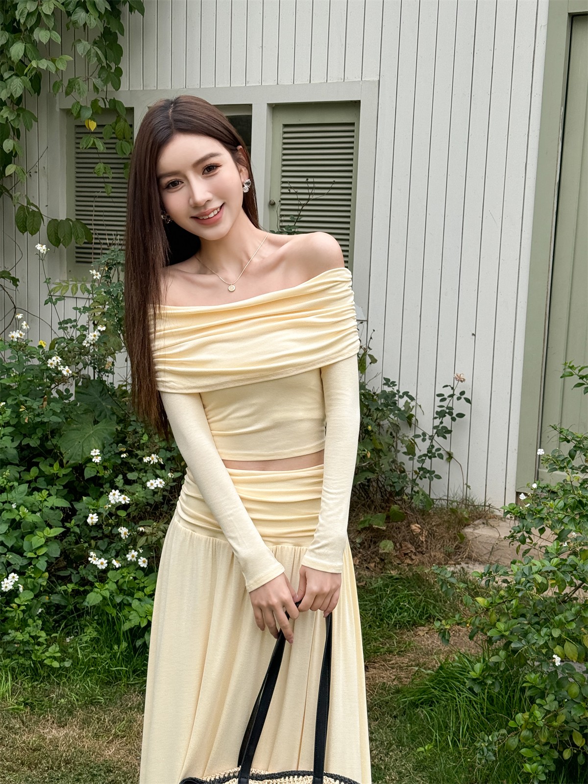 Stylish Spring Outfit: Slim Fit One Shoulder Top and Pleated Skirt Set