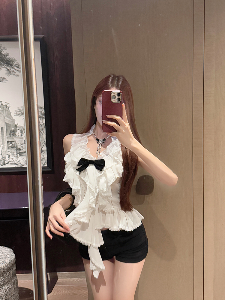 Small Fragrant Wind Halter Ruffle V Chiffon Shirt pired Top High-quality product featuring fairy costume, outfit inspo fall, simple costume ideas and more. Modern design that fits the latest trends. Premium materials ensure durability and comfort. Order now for special offers! Product designed with attention to every detail. Suitable for all occasions and personal styles.