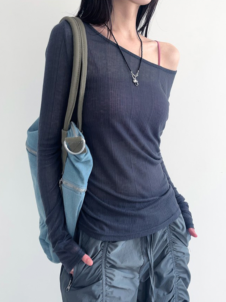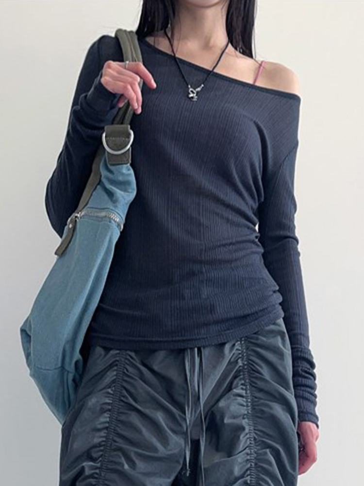 Smog Blue Lace up Backless Fitted Thin Knit Top Women One Sho – Y2k Outfits