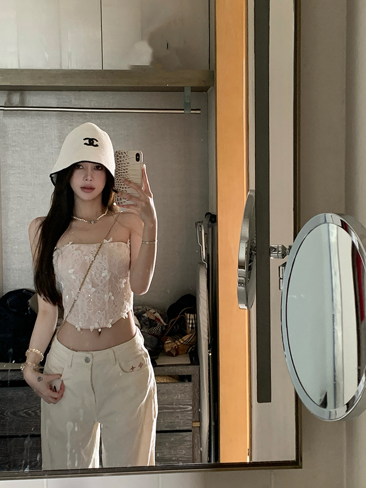 Stylish Spring Outfit: Women’s Slim Fit White Jacquard Denim Pants