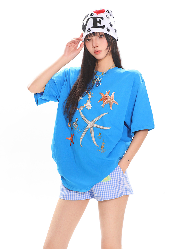 Starfish Shell Basic Loose Couple Pullover Casual Short Sleeve Top Y2K High-quality product featuring easy couple halloween costumes, y2k outfits, easy couples costumes and more. Modern design that fits the latest trends. Premium materials ensure durability and comfort. Order now for special offers! Product designed with attention to every detail. Suitable for all occasions and personal styles.