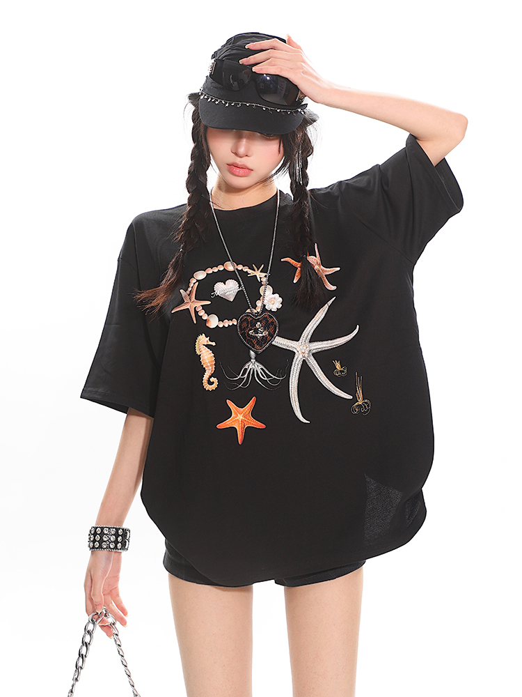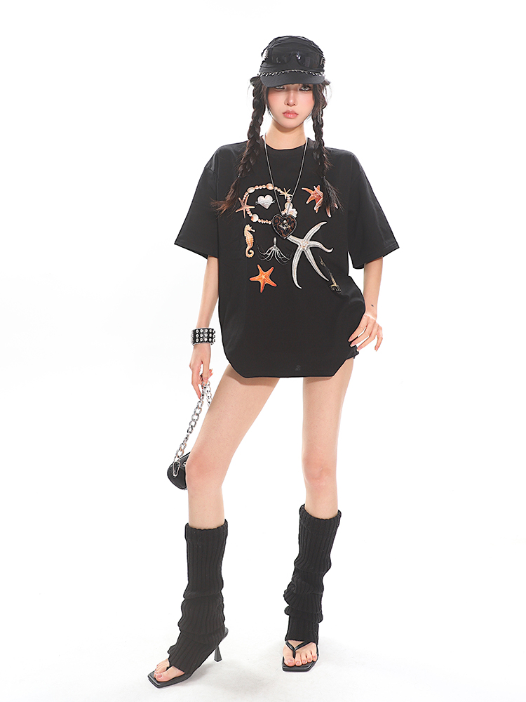 Embrace the nostalgia of Y2K and 90s fashion with our Starfish Shell Basic Loose Couple Pullover T-Shirt. This casual short sleeve top features a relaxed fit, making it perfect for layering or wearing on its own for a laid-back yet stylish look. Crafted from soft, breathable fabric, it ensures all-day comfort while the unique starfish shell design adds a trendy touch to your wardrobe. Don’t miss out on this versatile staple add it to your cart today and elevate your style!