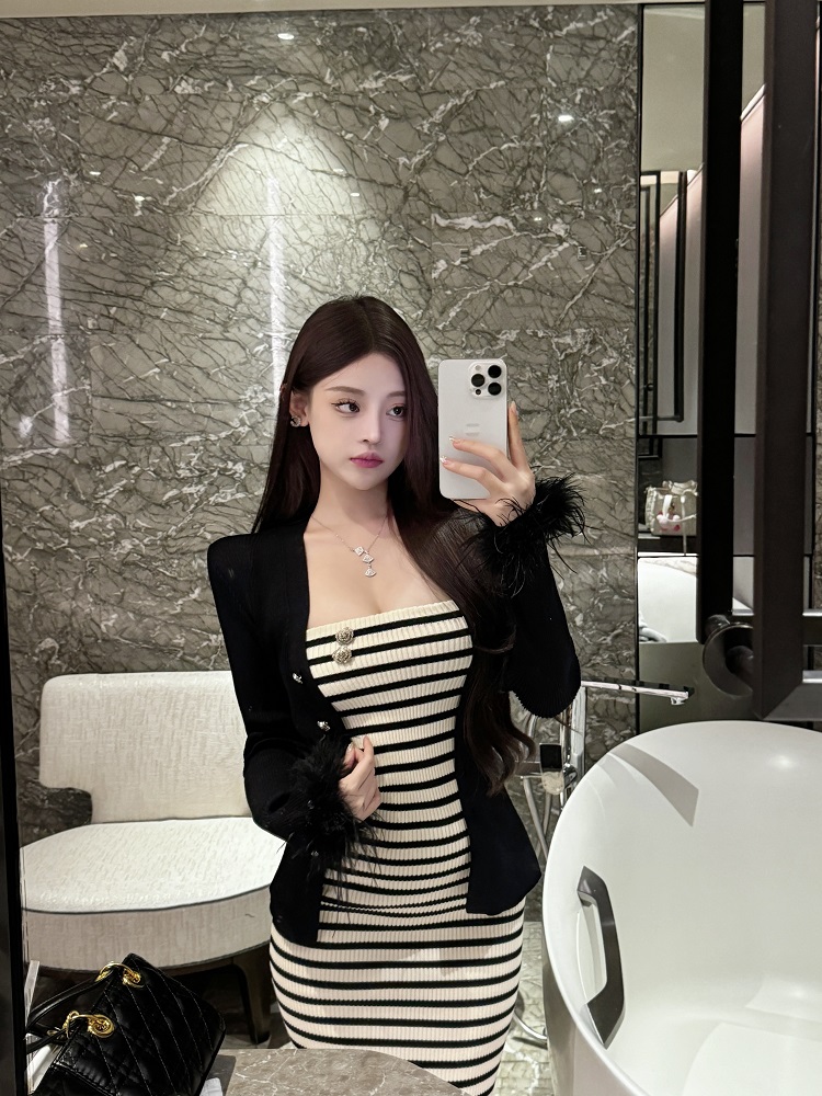 Elevate your autumn wardrobe with our Striped Knitted Dress for Women, a chic strapless slim fit camisole that embodies the essence of Y2K fashion. Crafted from soft, breathable fabric, this stylish dress hugs your curves in all the right places while providing optimal comfort for all-day wear. With its eye-catching striped design and versatile silhouette, it’s perfect for both casual outings and dressy occasions. Don’t miss out on this must-have piece add it to your cart today and make a statement this season!