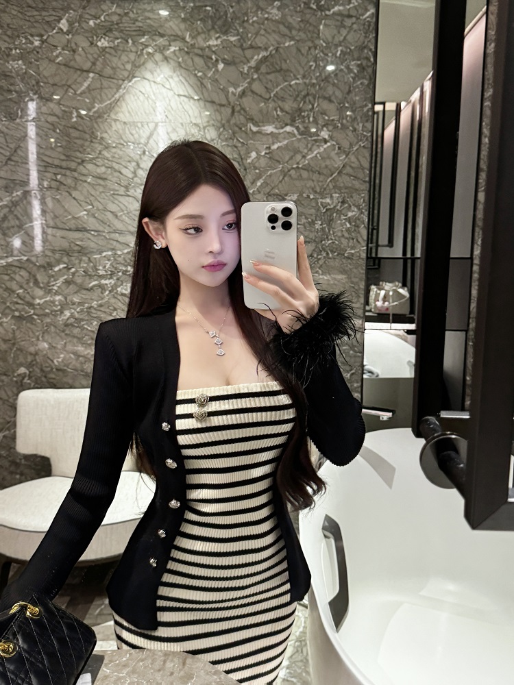 Striped Knitted Dress Women Autumn Strapless Slim Fit Camisole Dress, Y2K High-quality product featuring y2k outfits, fall fashion, fall outfits women and more. Modern design that fits the latest trends. Premium materials ensure durability and comfort. Order now for special offers! Product designed with attention to every detail. Suitable for all occasions and personal styles.