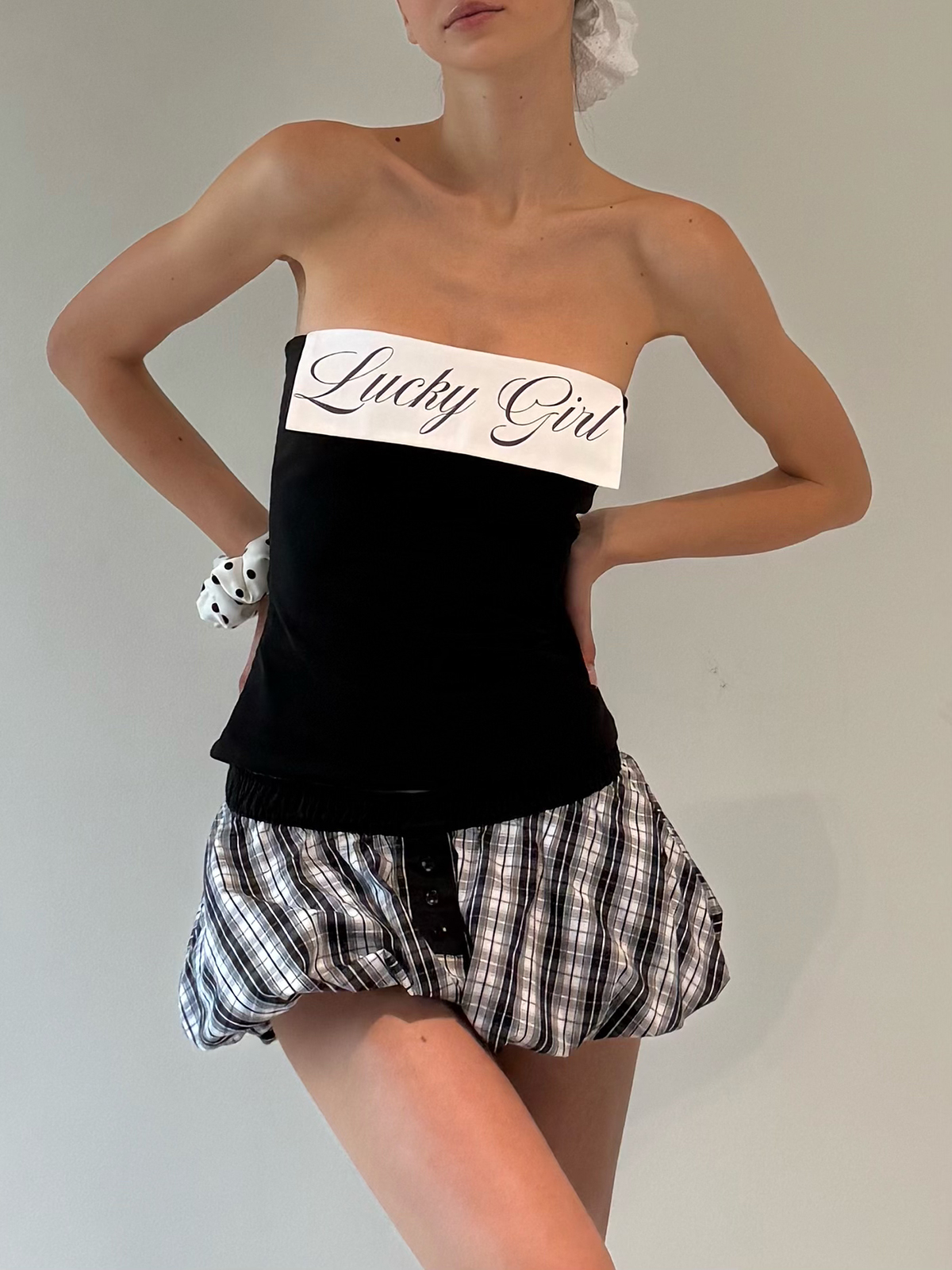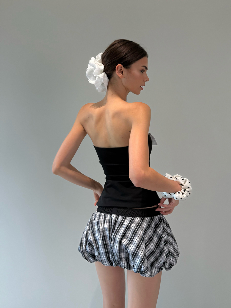 Step into the spotlight with our Stylish Split Lapel Strapless Top, perfectly paired with a waist-defined design and a playful plaid bubble skirt. This quirky Y2K fashion outfit is tailored for trendy girls who love to make a statement while enjoying a flattering fit. The unique combination of the structured top and voluminous skirt offers both comfort and style, making it ideal for parties or casual outings. Elevate your wardrobe with this standout ensemble add it to your cart today!