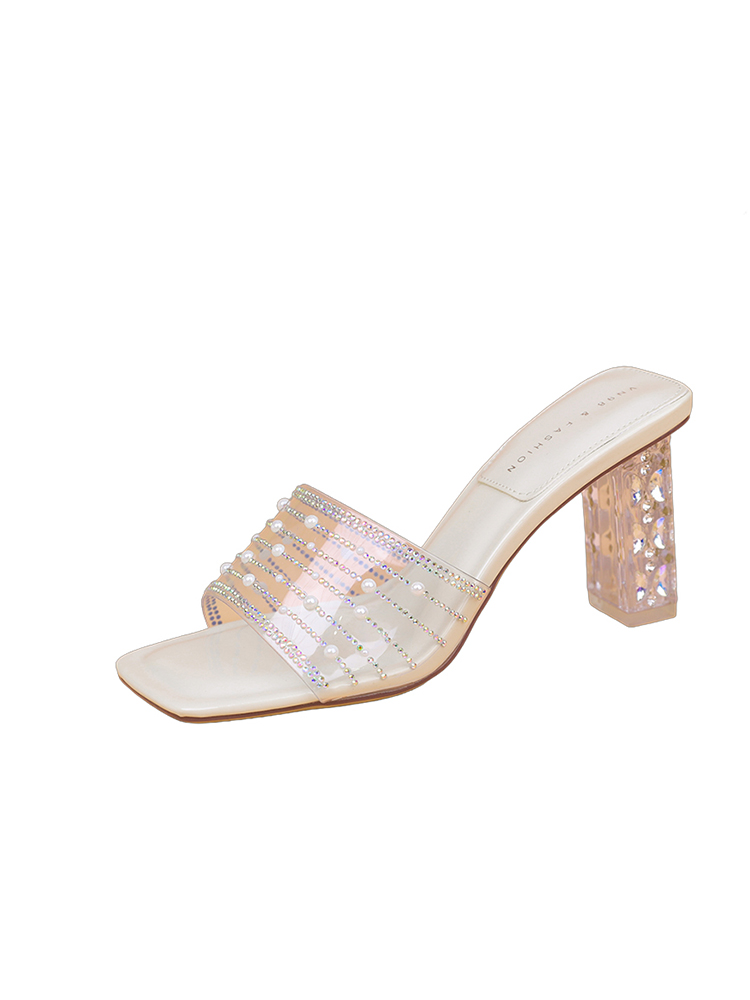 Step into style this summer with our Women’s Chunky Heel Slippers adorned with dazzling rhinestones. These transparent elegant high heels are designed for versatility, making them the perfect slide sandals for any occasion from beach outings to evening gatherings. Experience unmatched comfort with a sturdy chunky heel that offers both support and a touch of glam. Elevate your footwear collection and make a statement effortlessly. Add to your cart now and shine bright all season long!