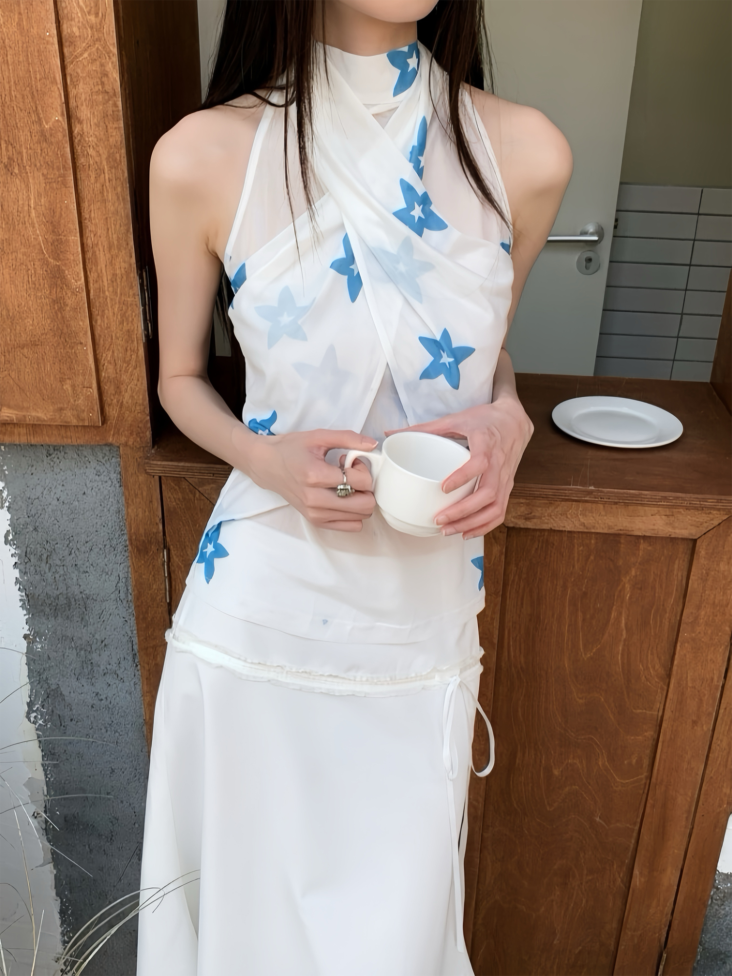 Summer Blue Star Flower Halter Tank Top: Perfect for Y2k Outfits High-quality product featuring 90s fashion, summer fits, 2000s fashion and more. Modern design that fits the latest trends. Premium materials ensure durability and comfort. Order now for special offers! Product designed with attention to every detail. Suitable for all occasions and personal styles.