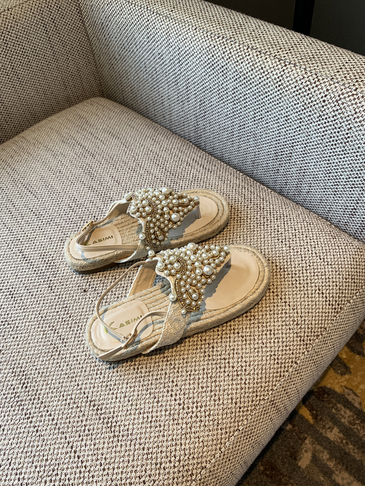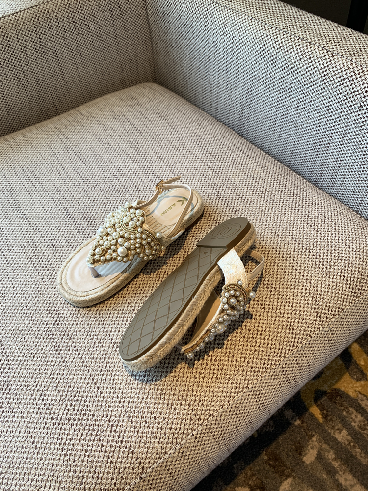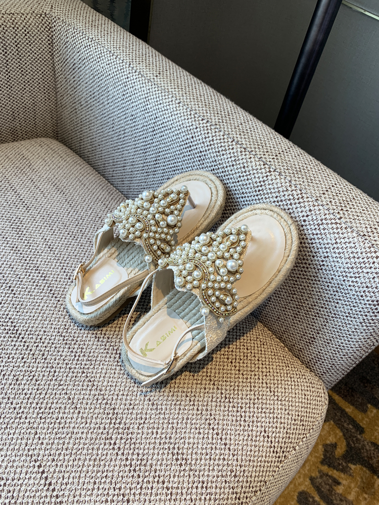 Summer Flat Sals Women Rhinones, Pearls, Woven Roman Thong Beach Shoes Footwear High-quality product featuring vacation outfits, casual summer outfits, spring outfits and more. Modern design that fits the latest trends. Premium materials ensure durability and comfort. Order now for special offers! Product designed with attention to every detail. Suitable for all occasions and personal styles.