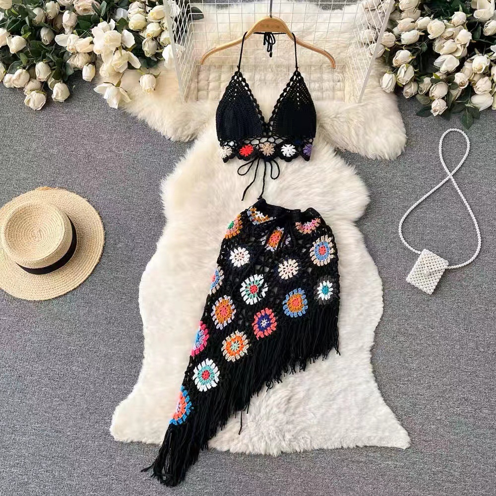 Summer Halter Neck Two Set Women, Backless High Waisted Skirt Hollow Out, Tassels, Outfit High-quality product featuring going out outfits, fall outfits women, fashion outfits and more. Modern design that fits the latest trends. Premium materials ensure durability and comfort. Order now for special offers! Product designed with attention to every detail. Suitable for all occasions and personal styles.