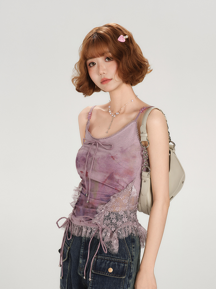 Summer Lace Splicing Printed Slim Fit Tank Top Women – Summer Fits