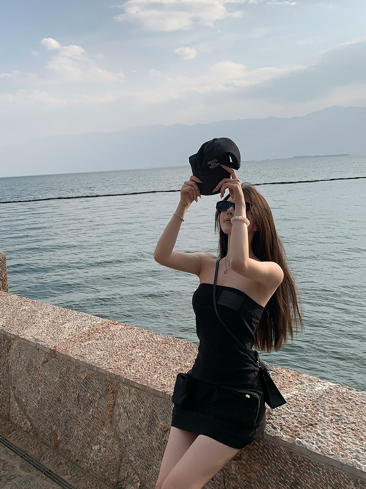 Summer Vintage Black Strapless Dress Short Y2K Girl Workwear High-quality product featuring summer fits, work outfits women, 90s fashion and more. Modern design that fits the latest trends. Premium materials ensure durability and comfort. Order now for special offers! Product designed with attention to every detail. Suitable for all occasions and personal styles.